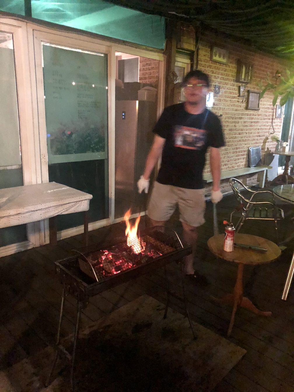 장시간의 회의를 끝내고 고기를 굽는 조식님,,