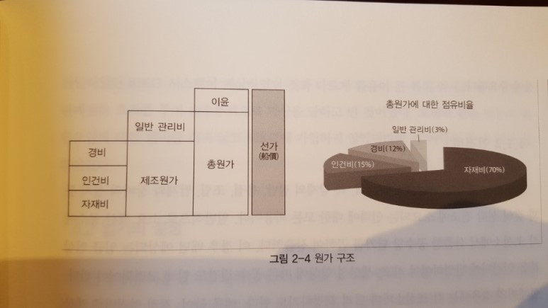 그림 왼쪽에 있는 도식화된 그림은 비단 조선업 뿐만 아니라 대부분의 제조업 기업에 경우에 적용할 수 있는 그림입니다. 대략 원가구조를 보면, 자재비가 70% 인건비가 15% 경비 및 일반 관리비 15% 구조로 구성되어 있는 것을 확인할 수 있습니다.