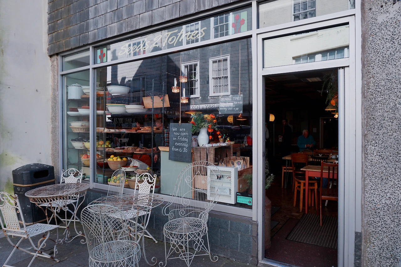 토트네스에서 보내는 첫날, 늦은 점심을 해결하려 마을에서 가장 오래된 가게 중 하나라는 브리오슈 The Brioche에 들렀다. 단출한 차림과는 다르게 건강하고 풍부한 맛에 먼저 놀라고, 동네 사람들이 오며 가며 우연히 만나 자연스레 합석해 즐겁게 대화하는 모습에 또 한 번 놀랐다. 함께 온 강아지들도 서로 인사하며 반갑게 인사하는 모습이 정다웠다. 토트네스의 카페나 레스토랑은 지역 농산품이나 오가닉 제품을 쓰는 곳이 대다수였고, 채식을 지향하는 곳도 많았다. 적어도 먹거리에 대해서는 안심하고 외식할 수 있는 곳인 셈이다. 환경과 지역 살림을 중요하게 생각하는 토트네스의 정신이 상점 하나하나에 녹아있는 것이 몸으로 느껴졌다.