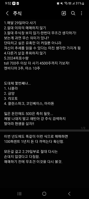 이러한 실수들을 기점으로 해서 2024년 1월에 방학을 하고부터는 정말 열심히 주식 공부를 했다. 했던 실수를 다시는 반복하지 않기 위해서 메모장에 이런 의미심장한 글을 적고 실수를 범하려고 할 때마다 들어가 봤다.