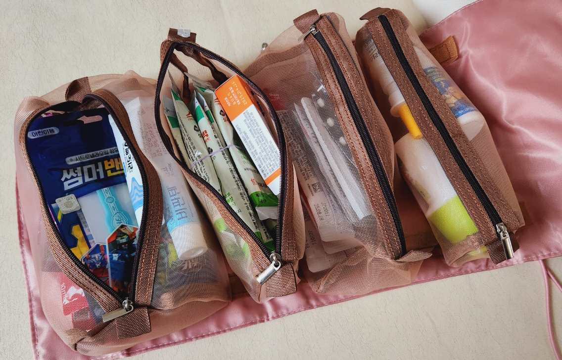 여행이 일주일 앞으로 다가오면서 캐리어를 거실에 그대로 펼쳐두었다. 리스트에 있는 물품은 어느 정도 정해졌지만 집안 곳곳에 필요하다고 생각하는 물품은 그때그때 채워 넣을 요량이었다. 9일 치 옷이 가장 큰 부피를 차지했고 이어서 수영/물놀이 용품 그리고 인당 두 켤레씩 되는 신발들이 이어서 캐리어를 차지했다. 각종 세면도구, 편의용품들은 가기 전날 아침에 마지막으로 캐리어를 차지했다. 여권, 바우처 등 중요한 물품은 남편과 나의 핸드캐리 가방에 잘 넣어두고 최대한 위험을 분산시켰다. 환전한 현금은 30만 원 정도로만 하고, 한국에서 환전한 바트화를 체크카드 형식으로 사용할 수 있는 트래블 카드를 신청하여 현금 분실 위험 없이 아주 잘 사용하였다. 짐을 싸며 내가 가장 많이 신경 썼던 부분은 비상약품이었다. 동남아 국가 특성상 물갈이를 할 수도 있고, 향신료 가득한 현지 음식을 먹다 보면 탈이날 위험도 있을 것 같았다. 그 외에도 아이가 키위에 알레르기가 있어 이외의 처음 맛보는 열대과일에 알레르기 반응을 일으키진 않을지도 걱정되어 세세하게 비상약품 목록을 짰다. 약국에서 판매되는 약은 구매 했고, 처방을 받아야 하는 약들은 아이가 다니는 소아과 선생님께 말씀드리고 처방받아 준비를 마쳤다. 태국에 약국 차리러 가는 사람처럼 약을 한 푸대 넣고 나니 비로소 여행 준비가 끝난 것 같은 안심이 들었다. 이번 여행은 그 어떤 이유로도 조금도 망치고 싶지 않은 나의 욕심 때문에 수많은 약들은 영문도 모른 채 우리 캐리어에 실려 태국까지 가보는 영광(?)을 누리게 되었다.