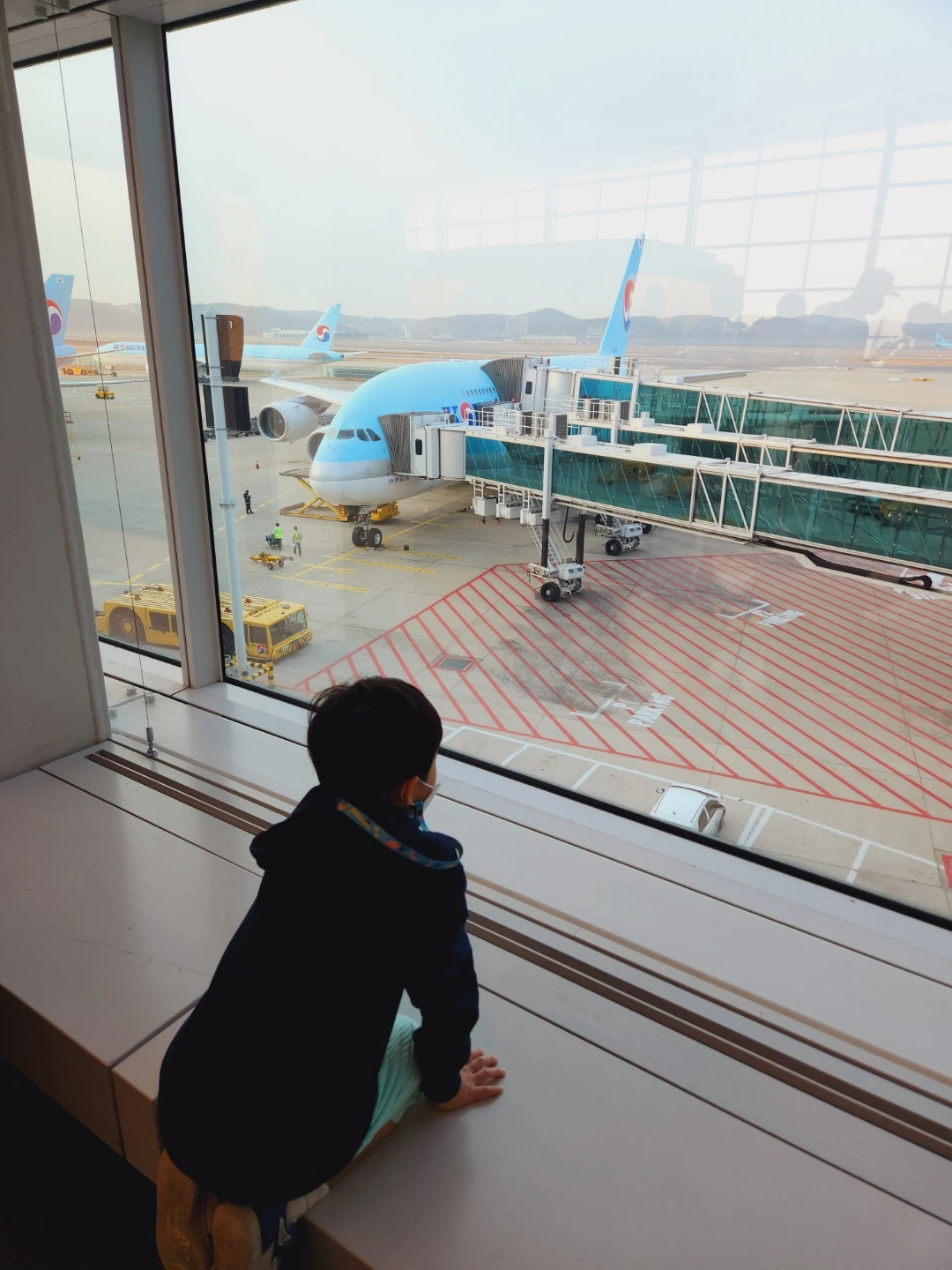 오랜 기다림 끝에 드디어 떠나는 그날이 왔다. 새벽부터 분주히 움직여 마지막으로 짐을 챙기고, 친정 아빠가 태워주는 차를 타고 인천 국제공항으로 갔다. 가는 길 내내 들뜬 아들 녀석은 새벽 5시부터 잠시도 입을 쉬지 않았다. 오랜만에 느껴보는 공항의 냄새. 그동안 아들은 대구국제공항만을 이용한 터라 인천국제공항의 풍광이 그에게 얼마나 신선하고 놀라웠을지, 둥그레진 눈을 보며 짐작할수 있었다. 수화물을 부치고 한껏 가벼워진 몸으로 환전한 돈을 찾으러 갔다. 일찍 도착한 탓에 속전속결로 진행되니 더할 나위 없이 좋았다. 남은 시간 동안 오빠는 라운지에서 즐거운 시간을 보내고 나와 아들은 공항 곳곳을 탐색하는 시간을 가졌다. 아들은 대구 국제공항과 비교도 안 되는 인천공항의 크기와 위엄에 감탄했고, 앞으로는 인천공항만 오고 싶다며 너스레를 떨었다.