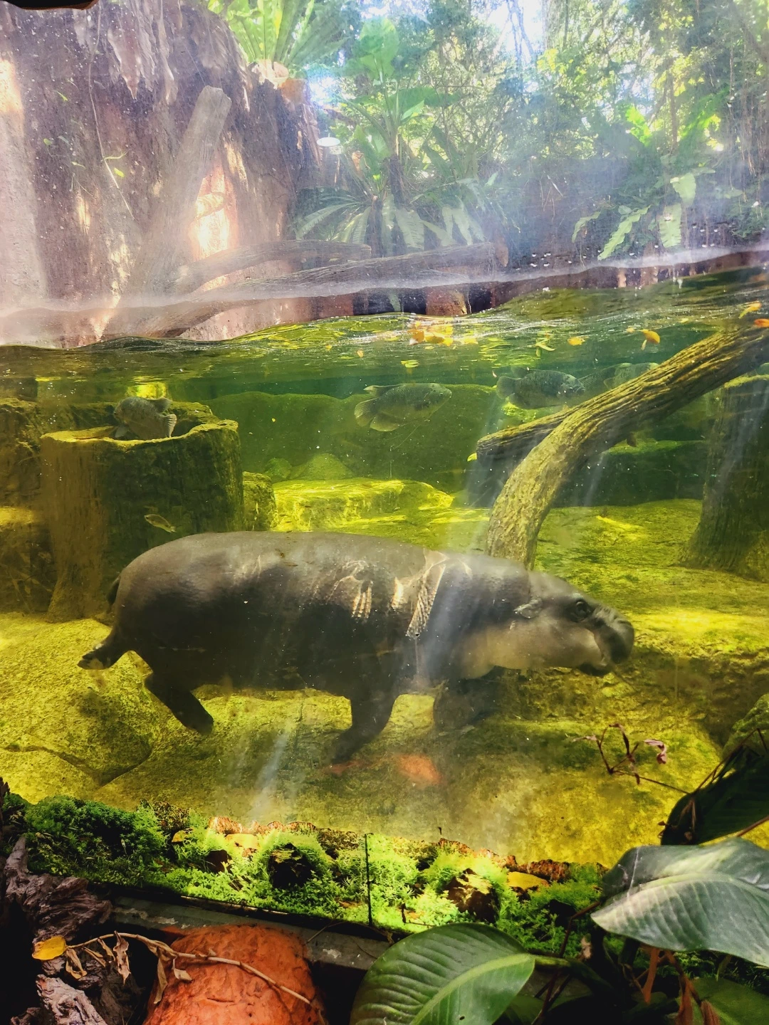 이어서 기사님을 따라 동물이 서식하는 스폿 스폿을 돌며 동물친구들을 찾아 나섰다. 동물들은 바위 뒤 또는 바닥에 딱 붙어서 방해받지 않은 채 자신들의 생활을 즐겼다. 볼 테면 봐라 우린 이렇게 누워있을 테다 하는 패기가 우습지만 맘에 들었다. 아이와 나는 동물 숨은 그림 찾기라 명명하며 숨어있는 녀석들을 먼저 찾는 일종의 게임을 벌였다. 몸집이 큰 녀석들은 금방 눈에 띄었고 도마뱀과 같은 작은 녀석들은 결국 이내 모습을 찾지 못하고 지나가기도 했다. 박쥐, 캥거루, 코알라, 하마, 거북이, 오 라우탄의 서식지를 구석구석 탐방하며 핑크존 관람을 마쳤다.