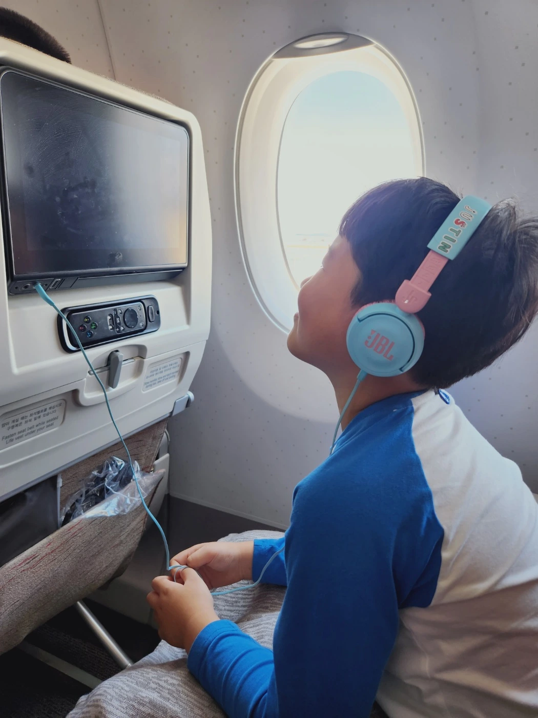 혁이는 지난 방콕 여행 때 기내식 맛을 알아버린 후 여행준비하는 줄곧 기내식에 대한 기대를 드러냈다. 유럽까지의 비행이 아이에게 결코 쉽지 않을 것 같아 미리 비행시간을 귀띔해 주었더니 그는 기내식을 두 번 먹고 이번엔 간식까지 먹을 수 있어 오히려 좋다며 원영적 사고를 발휘했다. 기내식이 있어(?) 우리 부부는 크게 안도했다. 첫 번째 기내식이 나오기 전 승무원 언니들이 준비에 바쁘자 한껏 들뜬 아들. 야무지게 선택한 음식을 한상 가득 먹고 헤드폰으로 보고 싶었던 영화, 만화 등을 보며 기내 생활을 온전히 즐겼다. 이내 졸린지 머리는 아빠에게 두고 다리는 내게 뻗어 쿨쿨 한숨 깊게 잠들기도 했는데, 이코노미석도 1등석만큼이나 즐기는 아들이 너무 귀엽고 고마웠다.