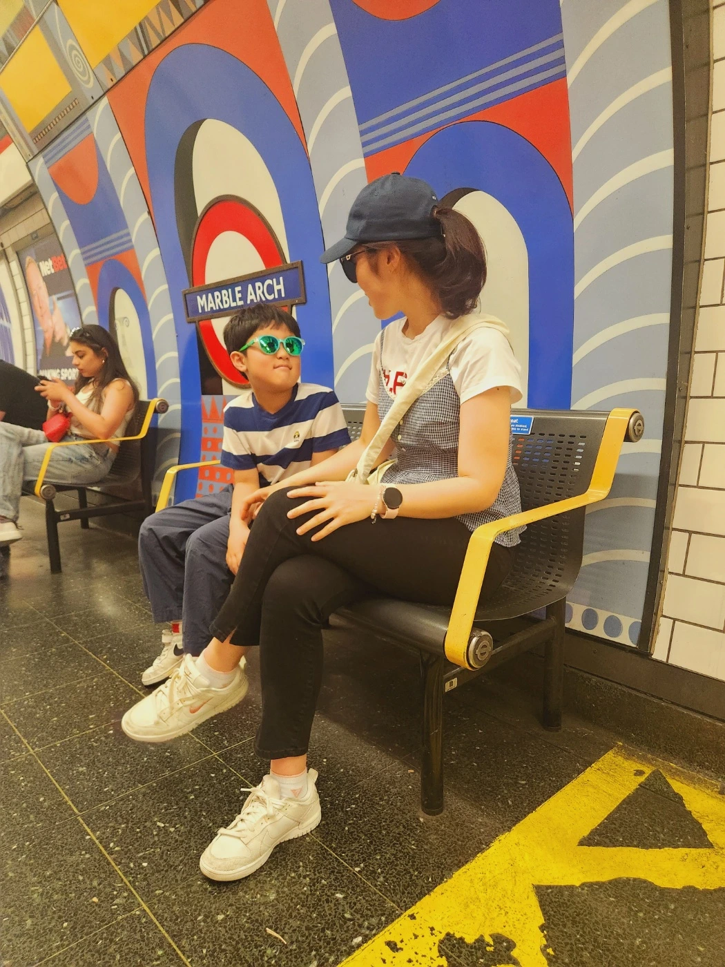 공원으로 이동하기 전에 스콘 맛집에 들러 스콘을 픽업하고 마트에서 먹을거리를 추가로 사기로했다. 지하철 역도 뭔가 느낌있구 좋았다. 영화 속에 들어온 느낌. 근데 아들 표정은 뭔가 혼나고 있는 얼굴인데 왜지.