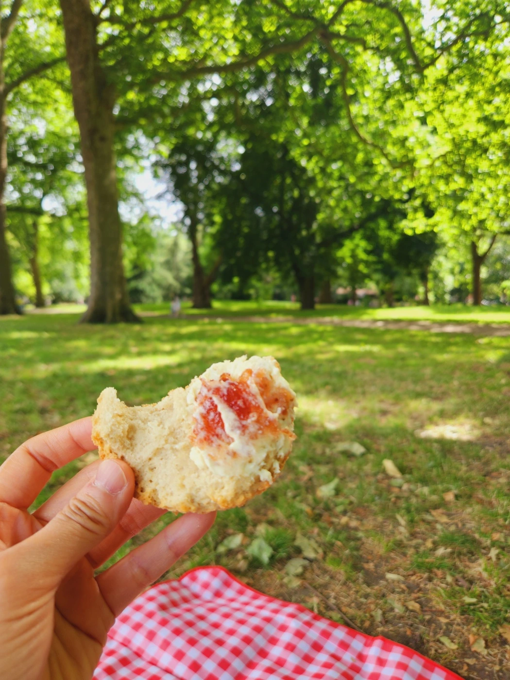 빅토리아역 근처에 있는 잉글리쉬 로즈 카페에 가서 스콘을 포장했다. 레이즌 스콘이랑 플레인 스콘 각 1개씩 담고, 화장실을 각각 이용했다. 화장실이 귀한(?) 런던에서는 카페든 음식점이든 어디든 이용후엔 꼭 화장실을 다녀오는 습관을 견지했다.