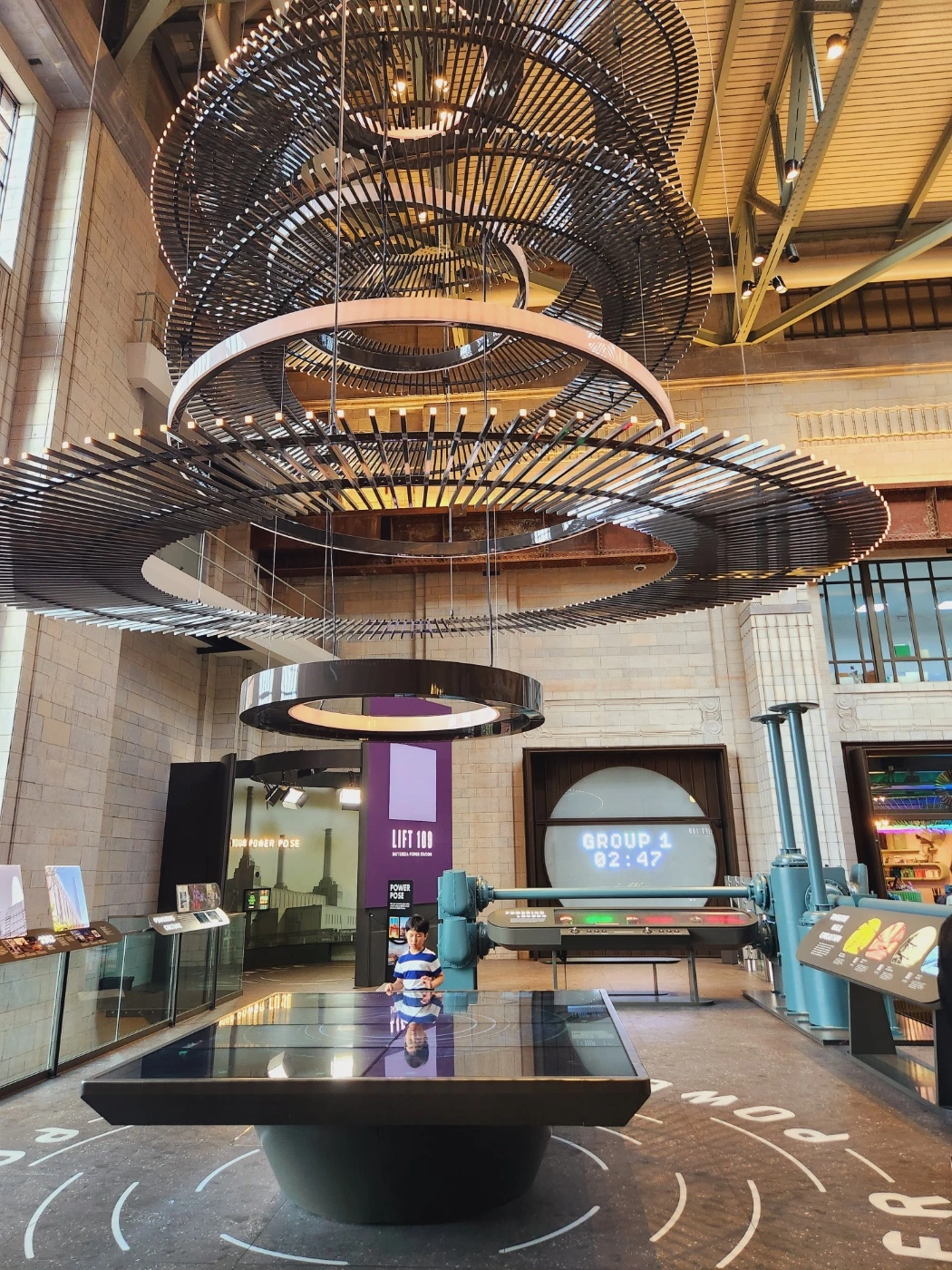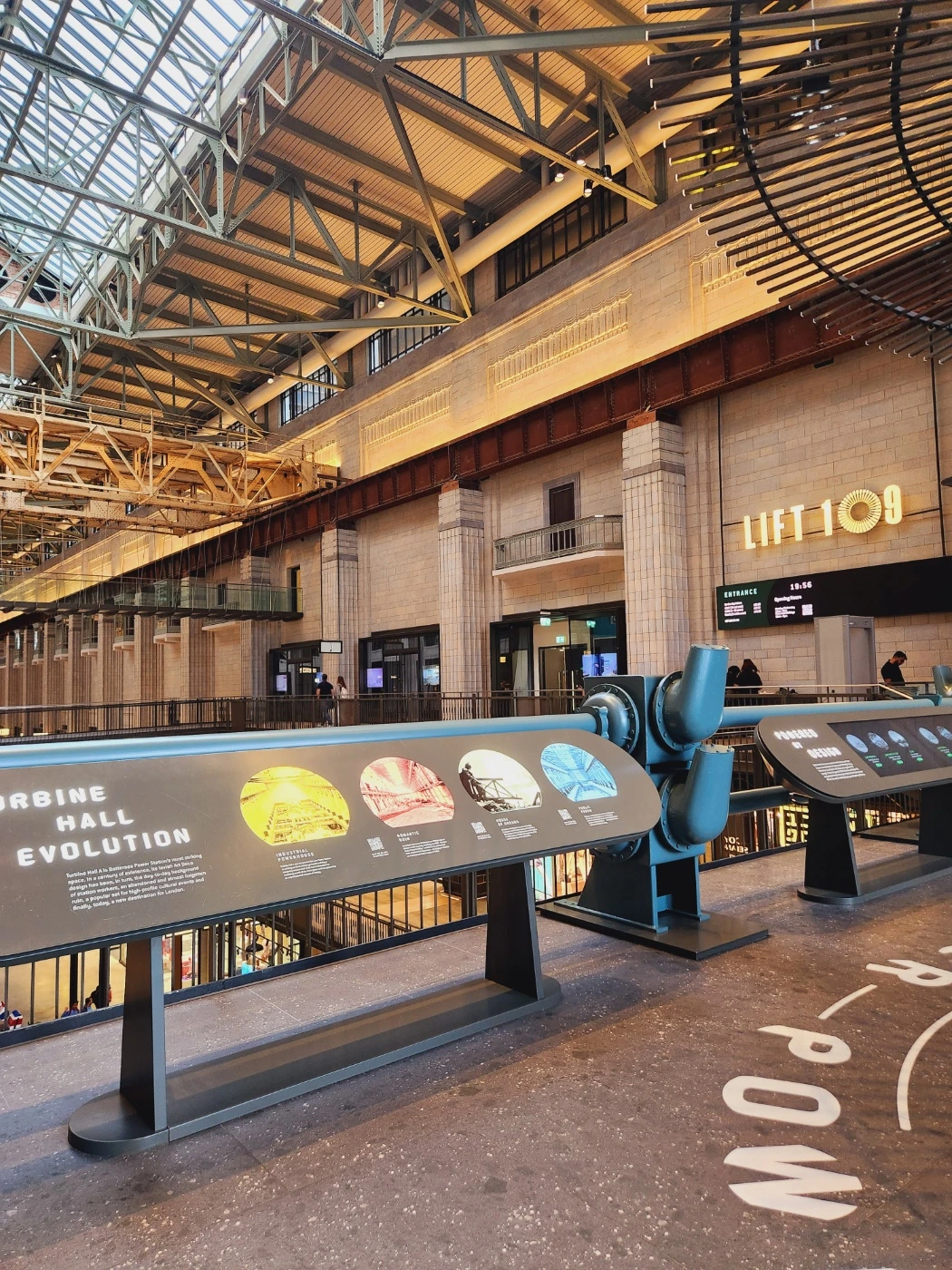 화력발전소의 모습을 하고 있는 외양과 다르게 내부로 들어서니 그야말로 우리나라 신식 쇼핑몰과 다름없었다. 내외부 이미지가 너무도 다른 아이러니가 묘하게 재미를 불러 일으켰다. 리프트 109 예약시간을 맞춰놓고 식사나 하자면서 1층의 햄버거 가게에서 여유로이 식사를 했다. 탑승시간이 가까워져 탑승장 근처로 이동했더니 리프트를 타기전까지 배터시 발전소의 진화된 모습 등을 볼 수 있는 전시실로 안내되었다. 흥미롭게 보고있는데 갑자기 알람이 울렸다. 알람의 주인공은 바로 아들이었다.