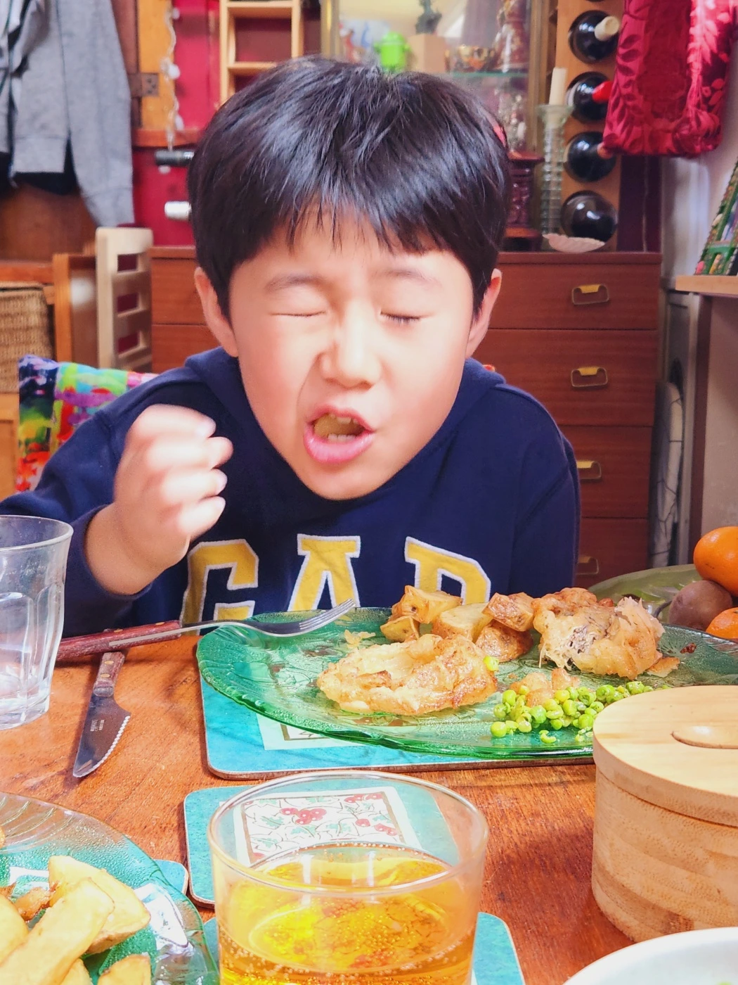 생선과 식감이 비슷하여 비건재료로 쓴다는 바나나 블라썸은 내 입맛엔 잘 맞지 않았다.(육식이 체질) 스스로 재료를 택한 두 남자는 맛있게 먹었으나, 남편은 생선보다 좀 더 기름을 많이 품어 느끼한 것 같다고 나중에 실토했다. 아들은 ,,,, 우리중에 제일 큰 접시를 가져가서 너무 맛있다며(젊으면 안느끼한가,,,) 싹 비워 선생님의 1순위를 더욱 공고히 했다.