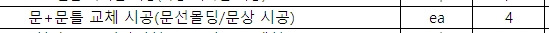 인테리어 세부 견적서를 비교해보면 방문 항목의 금액이 견적서별로 차이 나는 것을 알 수 있습니다. 그리고 항목의 내용을 문짝과 문틀로 나누어 세부적으로 표기하는 곳은 그리 많지 않습니다. 문짝과 문틀을 합쳐 1세트당 자재와 인건비 포함된 가격을 표시하는 경우가 많습니다. 이렇게 표시가 불분명한 경우 최종 계약 전 정확하게 확인하고 진행해야 합니다.