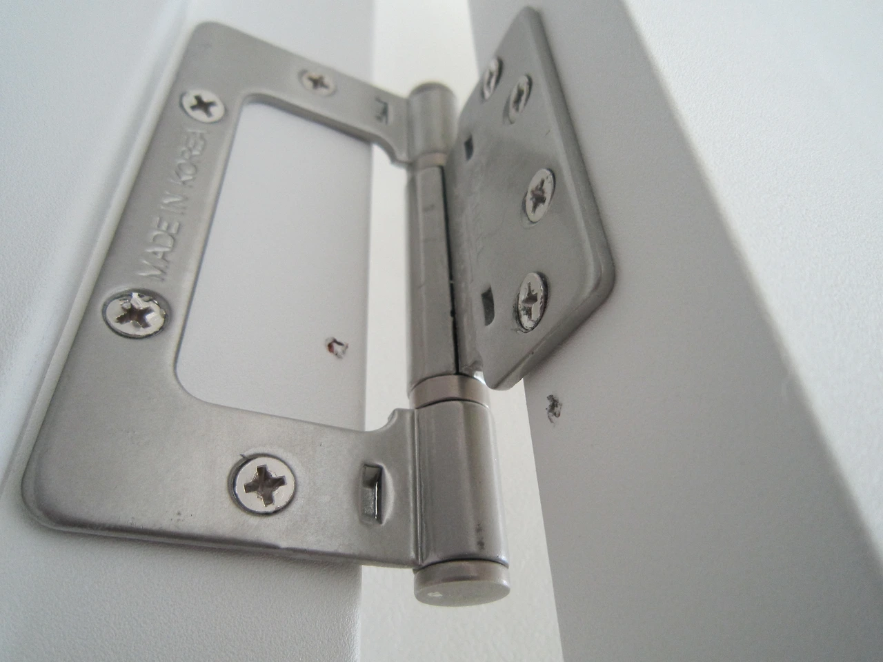 경첩은 시공이 잘못될 경우가 그리 많지 않습니다. 경첩의 시공이 잘못되었다면 문짝의 주문 치수가 잘못되었거나 작업자의 시공능력이 문제가 될 수 있습니다.