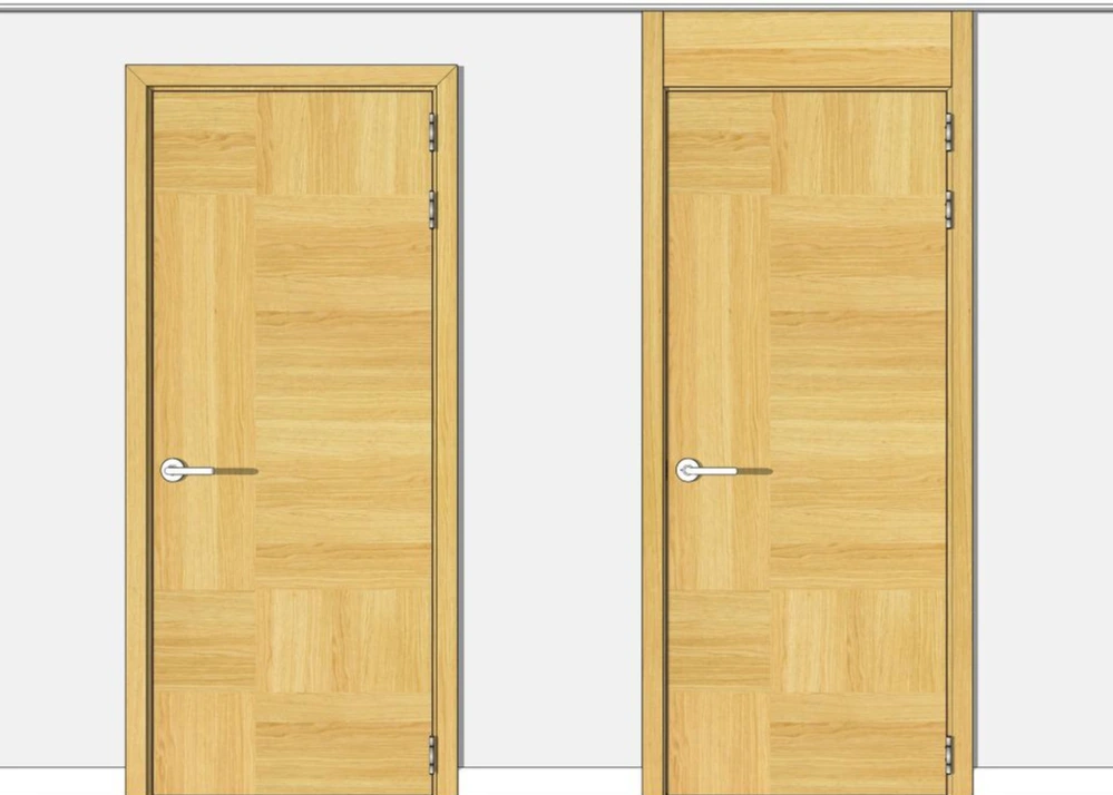 두 번째 방법은 문틀의 세로 방향으로 바닥부터 천장까지 설치하고 문틀 상부에 넓은 몰딩으로 마감하는 방법입니다. 요즘은 두 번째 방법이 표준인 것처럼 사용되지만 상황에 맞게 사용되어야 합니다.