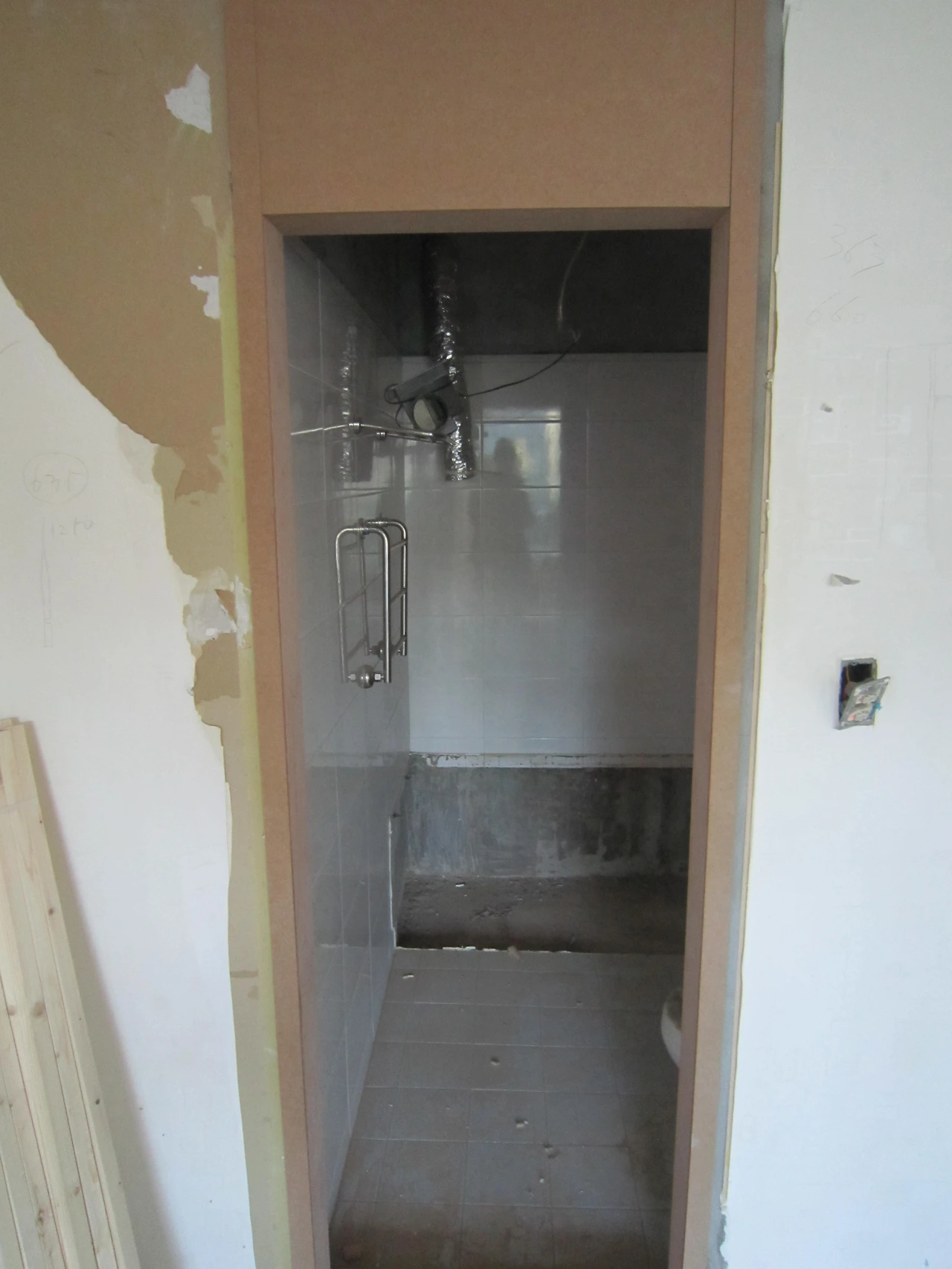 문틀의 비닐을 벗겨내고 문선몰딩을 시공했습니다.