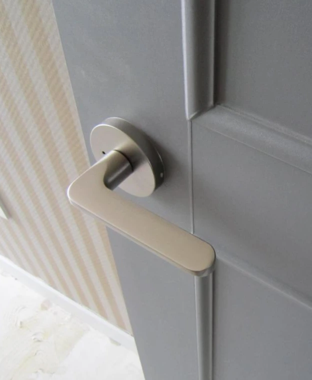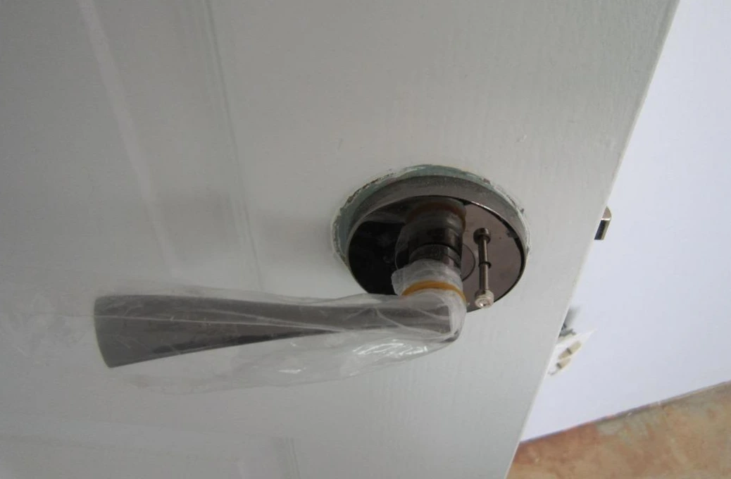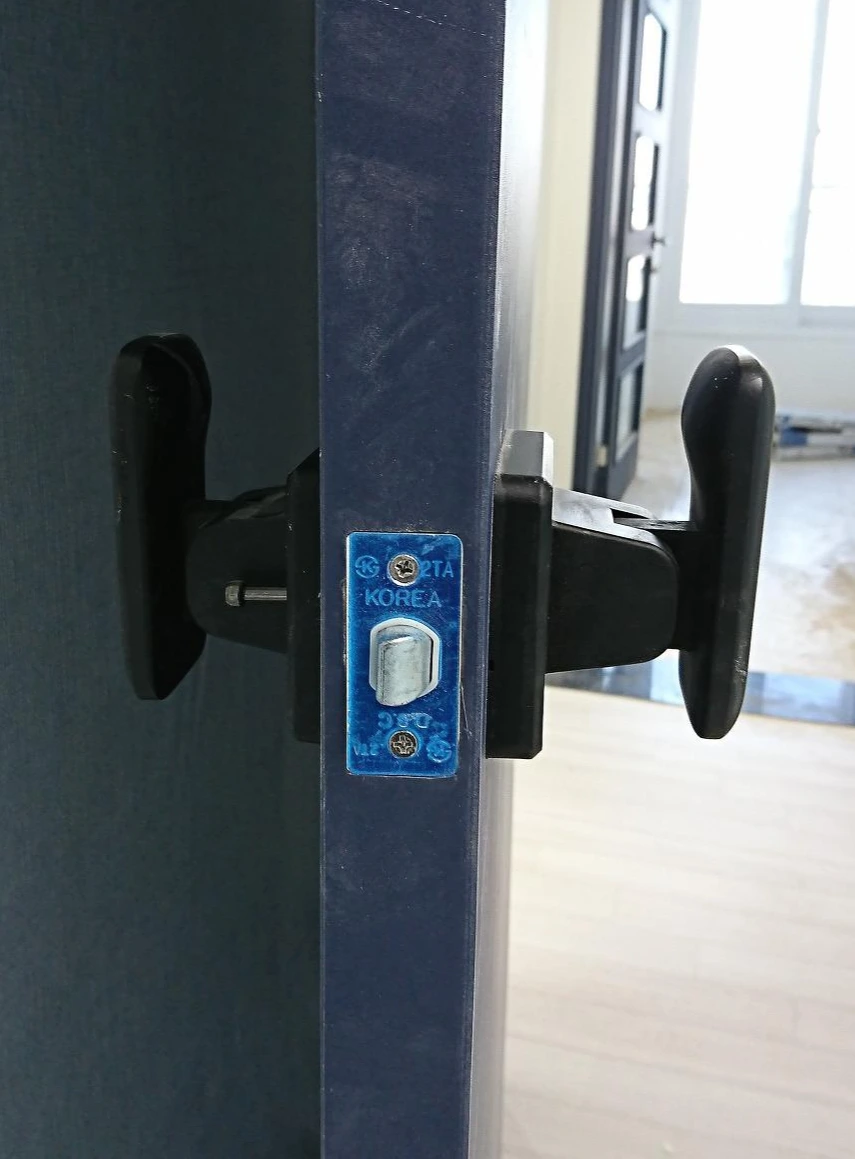 기존 문짝에 페인트 작업을 할 때 기존의 문손잡이를 제거하지 않고 이후 새로운 손잡이를 설치한 경우입니다.