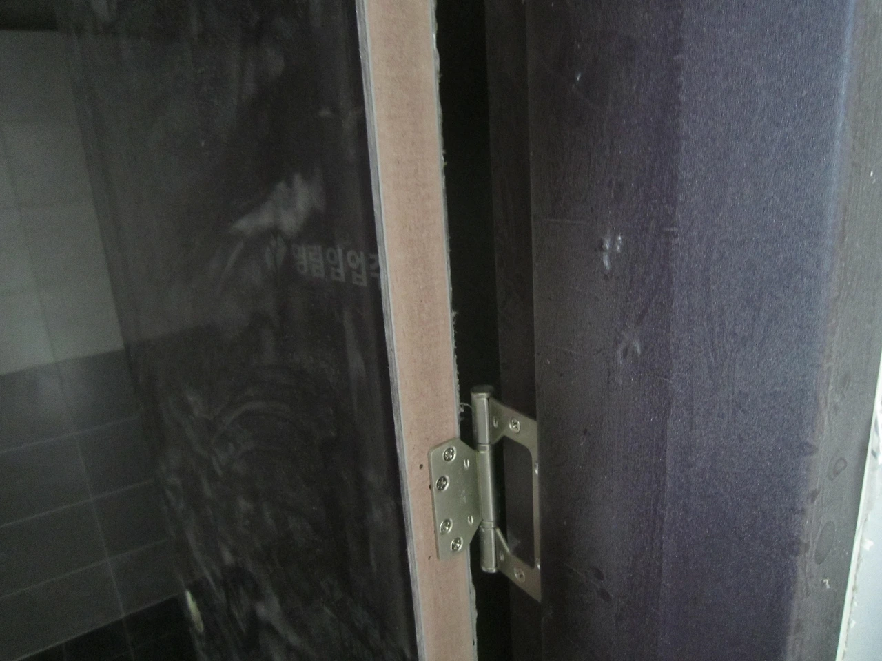 경첩의 방향이 잘못 조립된 불량 경첩이지만 교체하지 않고 그대로 시공했습니다.
