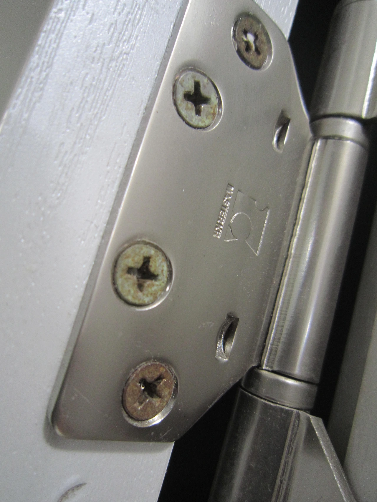 경첩을 새로 교체하면서 기존의 녹슨 나사못을 사용했습니다.