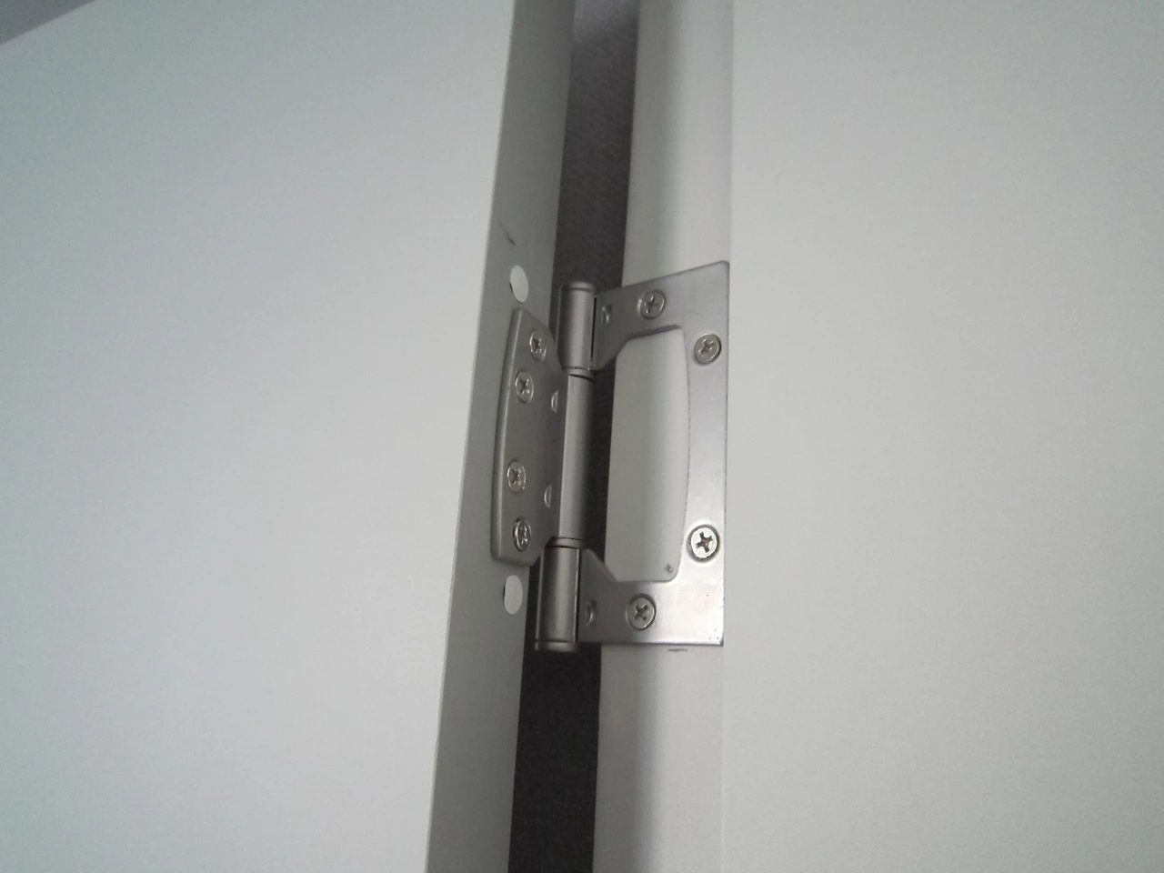필름으로 깨끗하게 리폼한 문에 기존의 낡은 경첩과 맞지 않는 나사못으로 시공되어 있습니다. 이지 경첩은 4~5천 원 정도의 가격입니다.