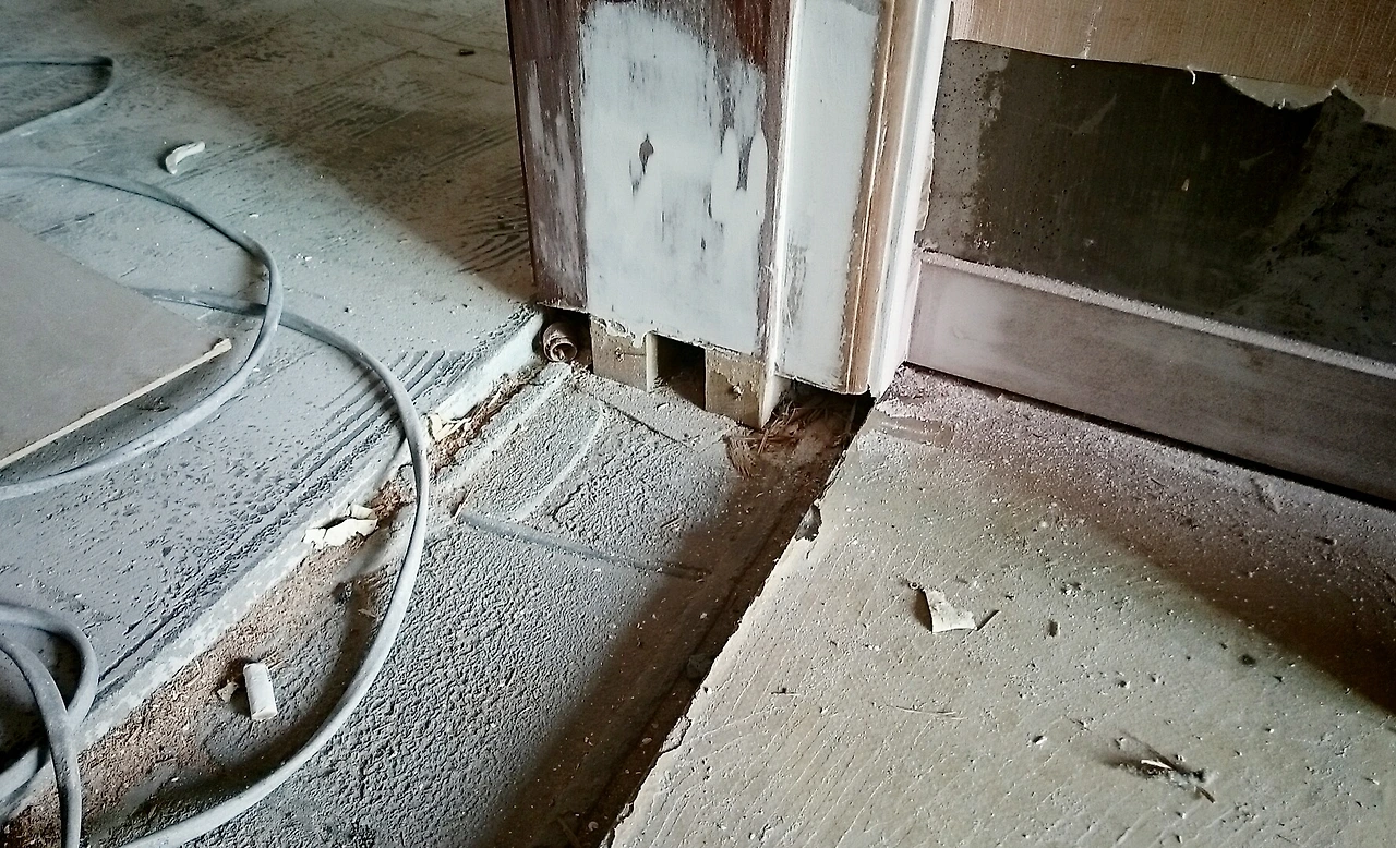 첫 번째는 문틀을 제거하고 그 자리에 미장 작업으로 메우는 것이 정답입니다. 간혹 문틀을 갈아 바닥과 면을 맞추어 남기는 업체가 있습니다. 이렇게 되면 이후 문턱 제거한 부분이 다른 바닥과 다르게 소리가 날 수도 있고 남아 있는 문틀이 변형될 수도 있습니다. 그리고 문틀 밑으로 보일러 배관이 지나갈 수도 있기 때문에 시멘트로 미장 작업을 하는 것이 가장 좋습니다.