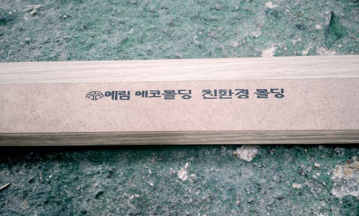 현재 가장 많이 사용되는 몰딩으로 일정한 모양과 규격으로 가공된 mdf에 인테리어 필름을 부착하여 만든 몰