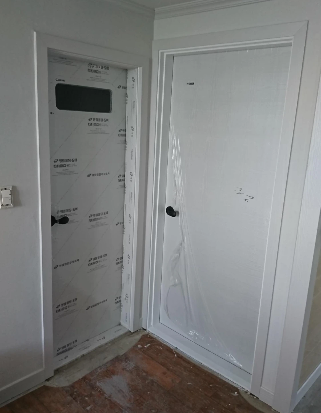문틀시공후 벽면과 문틀의 경계를 마감해주는 몰딩으로 벽 마감재와 문틀의 경계 역할을 하게됩니다.