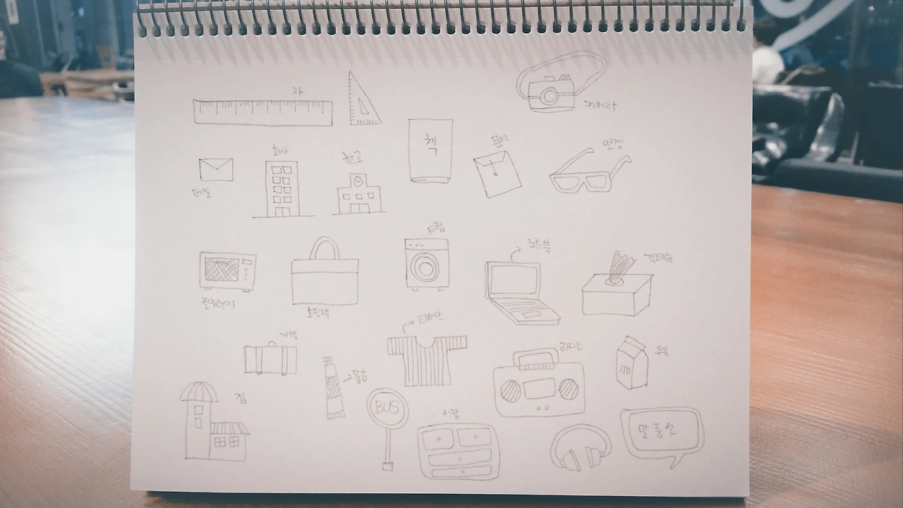 다양한 형태의 이미지들을 연필로 그리면 아래 샘플 이미지처럼 흐릿한 그림들이 채워지게 됩니다.
