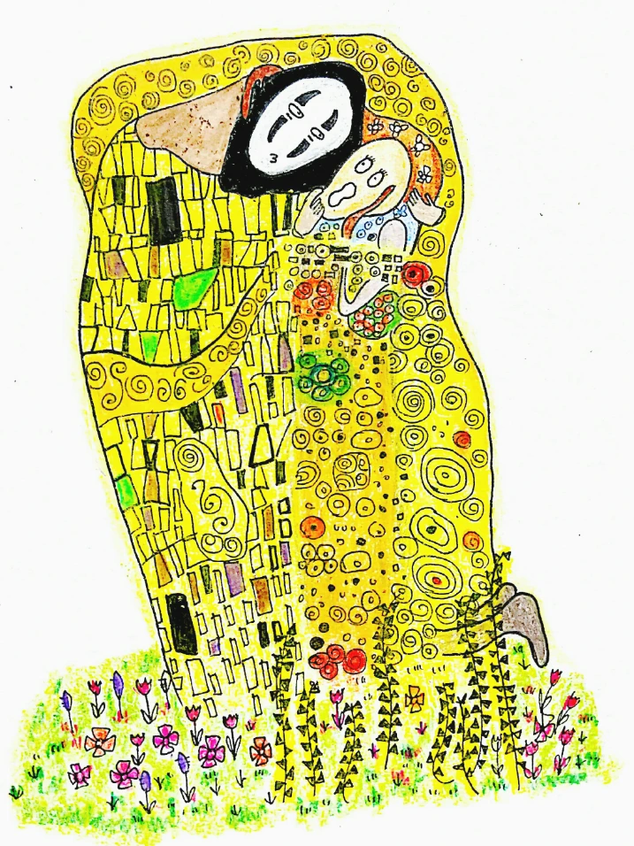 저는 위작품에 작은 변화를 주어 "키스의 절규"라는 이름으로 그림을 그려보았어요.