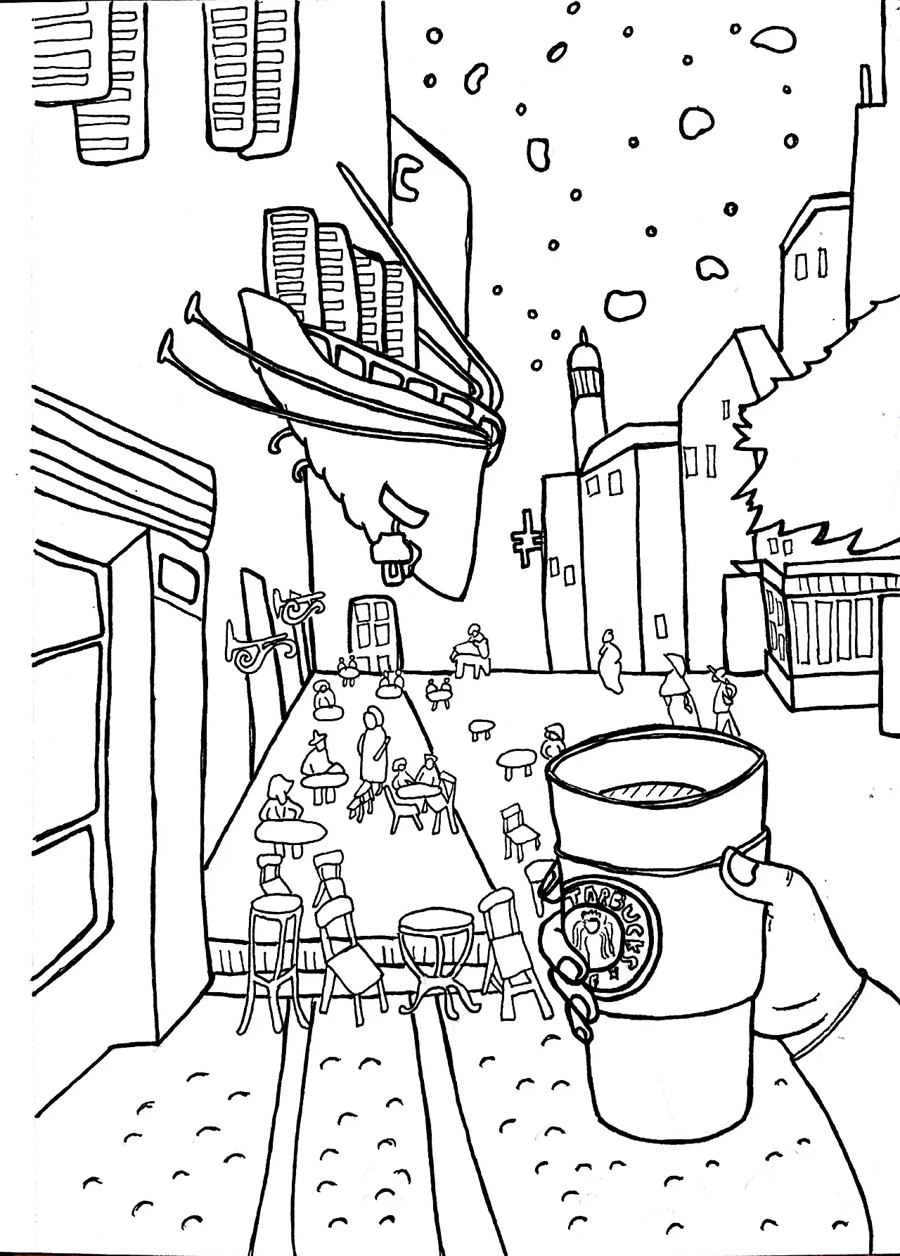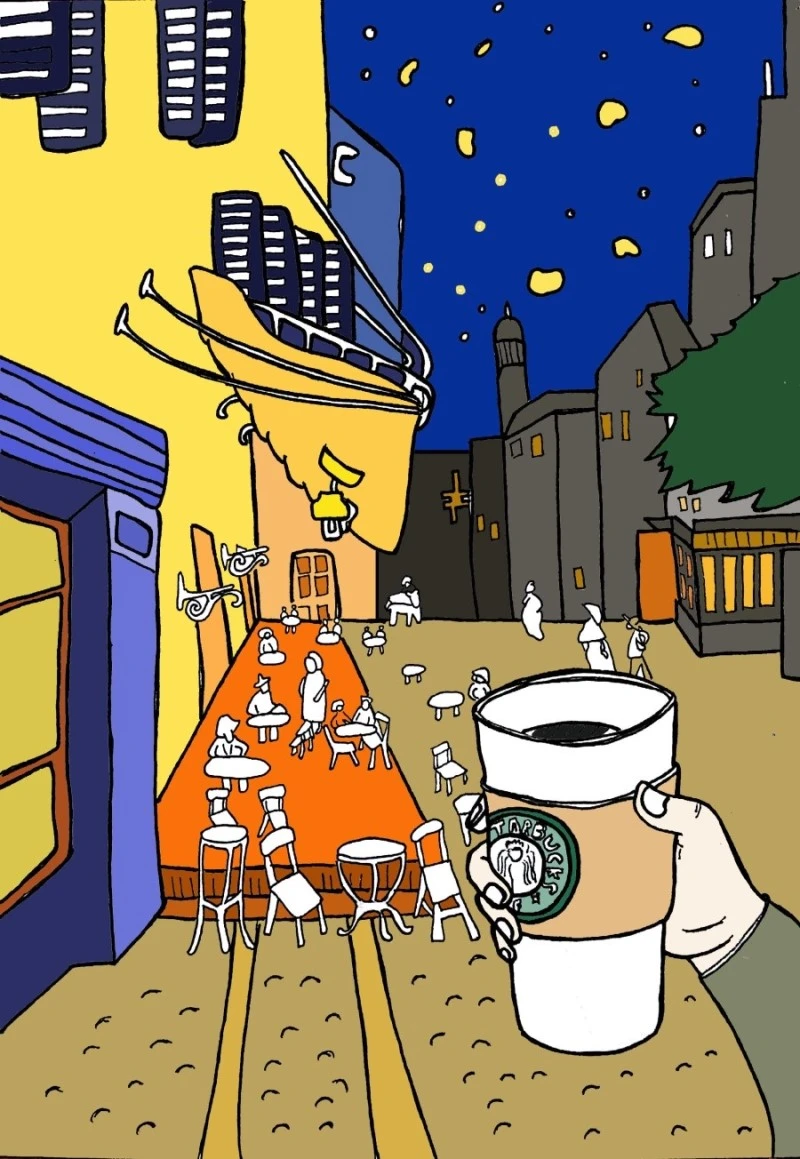 "밤의 테이크아웃"이란 제목으로 재구성하여 그려보았습니다.