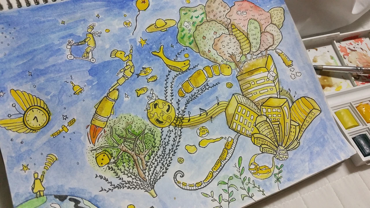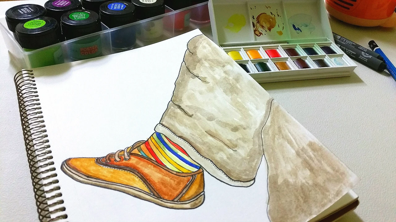 고체물감을 사용하여 그린 그림들.