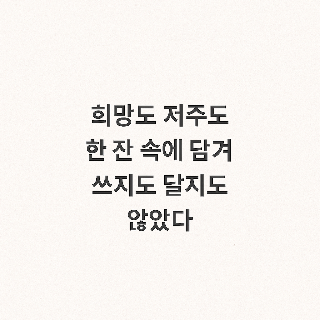 한 잔 속에 담겨 쓰지도 달지도 않았다.