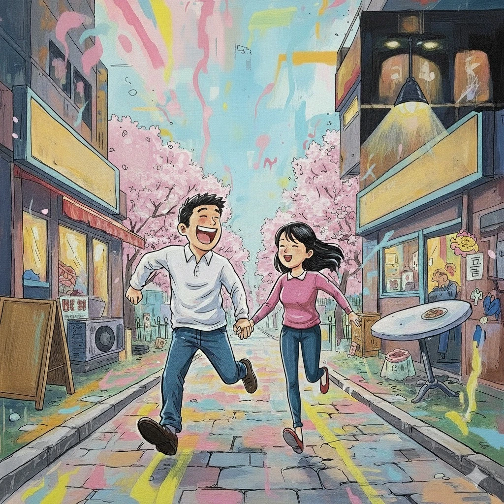 촌스러운 보도블록 길에는 벚꽃이 날리고,