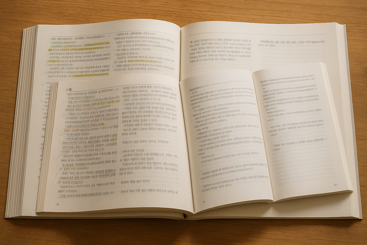 교과서는 형광펜과 낙서로 까맣게 물들었다.