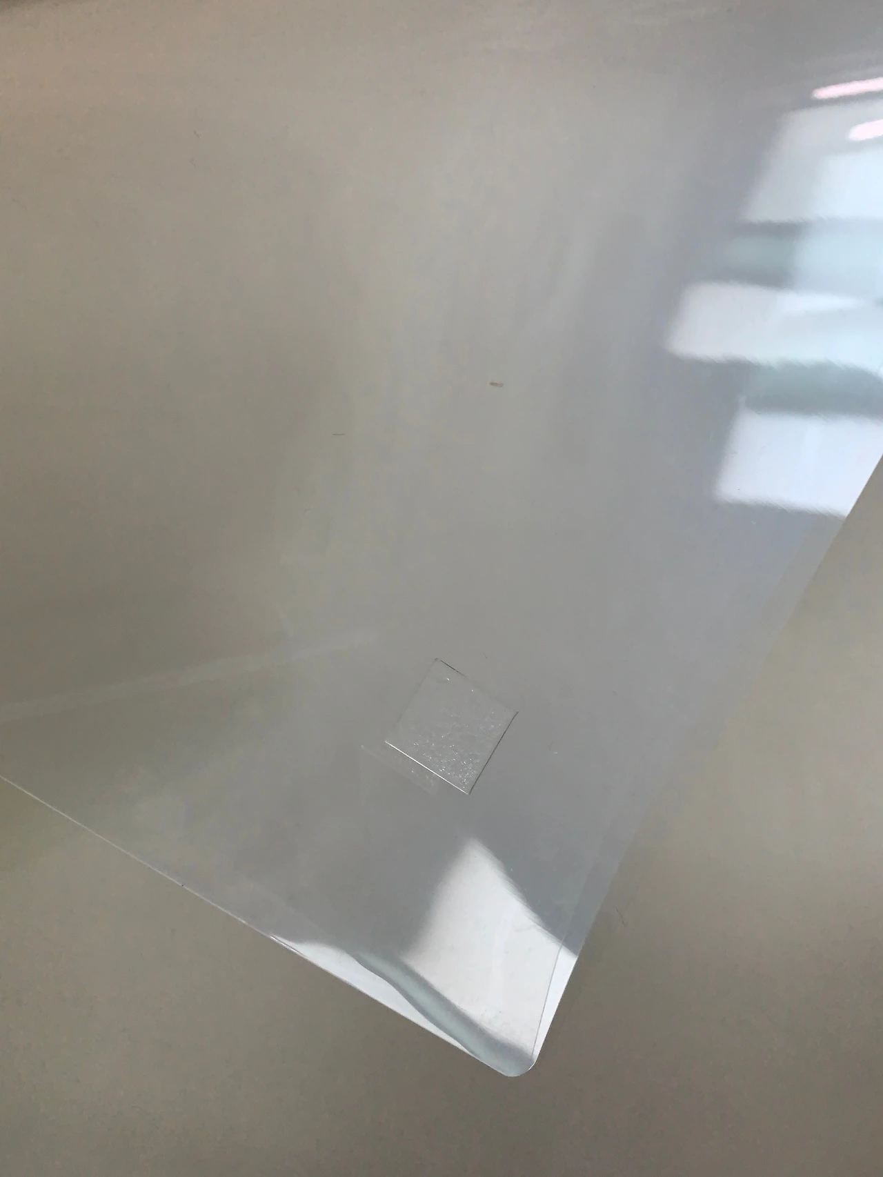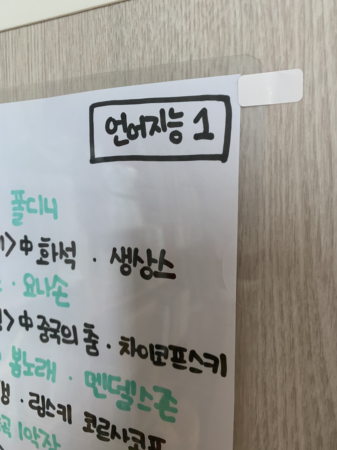 3. 투명 파일 네 모서리에 재접착 양면테이프를 붙인 후, 벽에 붙인다.