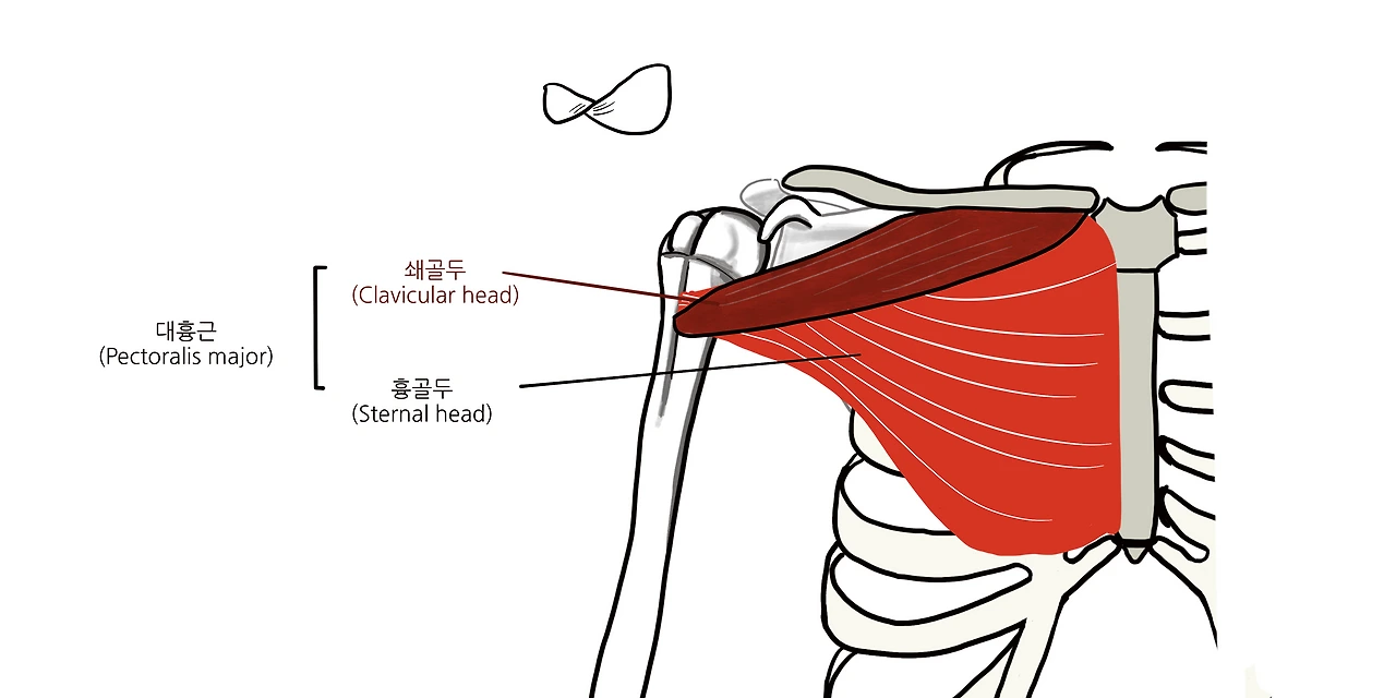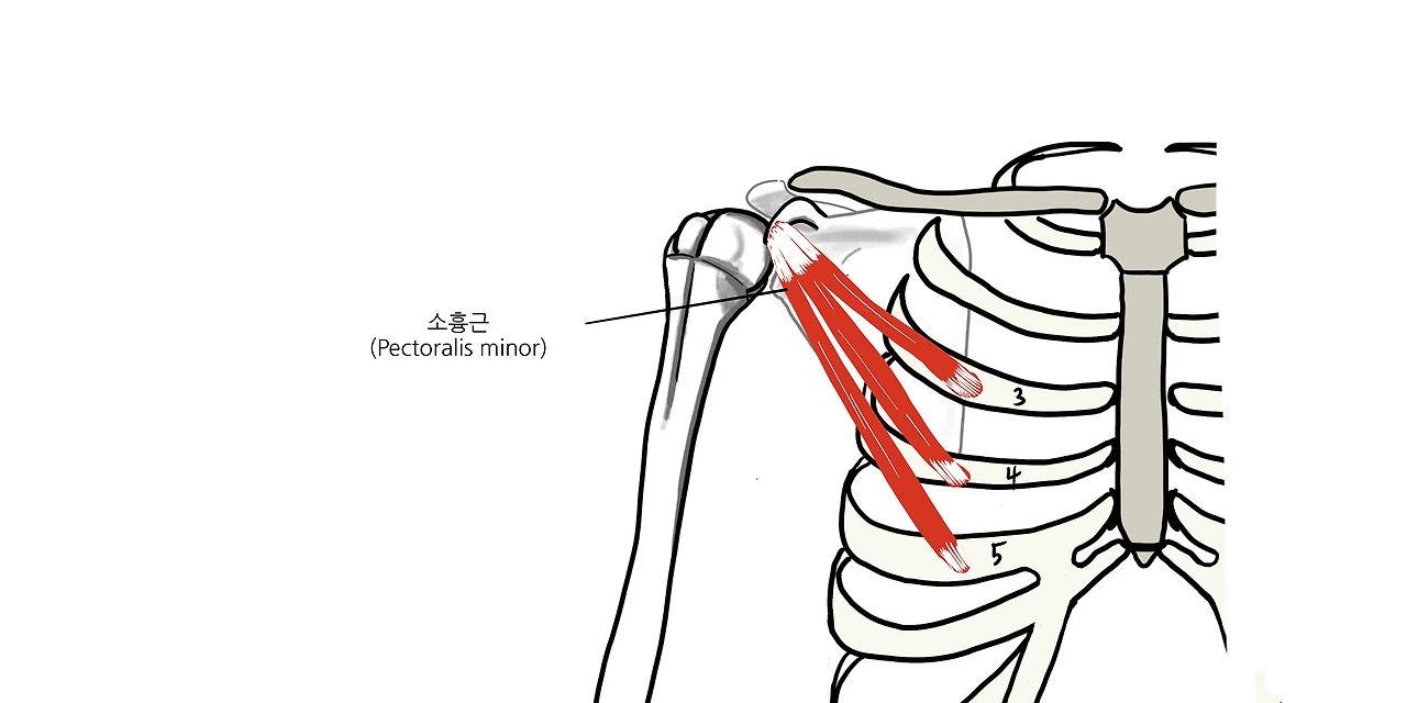 그래 가슴근육이 하나면 그냥 흉근이라고 했겠지. 가슴 근육 중 작은 친구라 소흉근이다. 얘는 대흉근이 가리고 있어서 눈으로는 볼 수 없다.