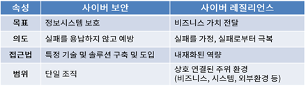 표 1. 사이버 보안과 사이버 레질리언스 비교 분석