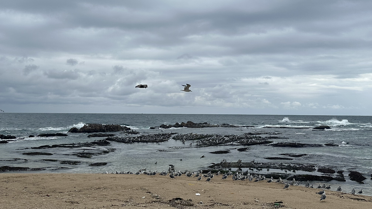 먹구름 가득한 바다는 성난 파도로 온통 넘실거린다. 바람과 파도를 피해 바닷가 바위마다 갈매기가 가득하다. 심술난 파도의 전쟁에 갈 곳 잃은 갈매기들은 그리운 바다와 가까운 갯바위에서 파도의 전쟁이 잠잠해 지길 기다린다. 전쟁을 피해 넘어온 이곳 고성의 피난민들 처럼…