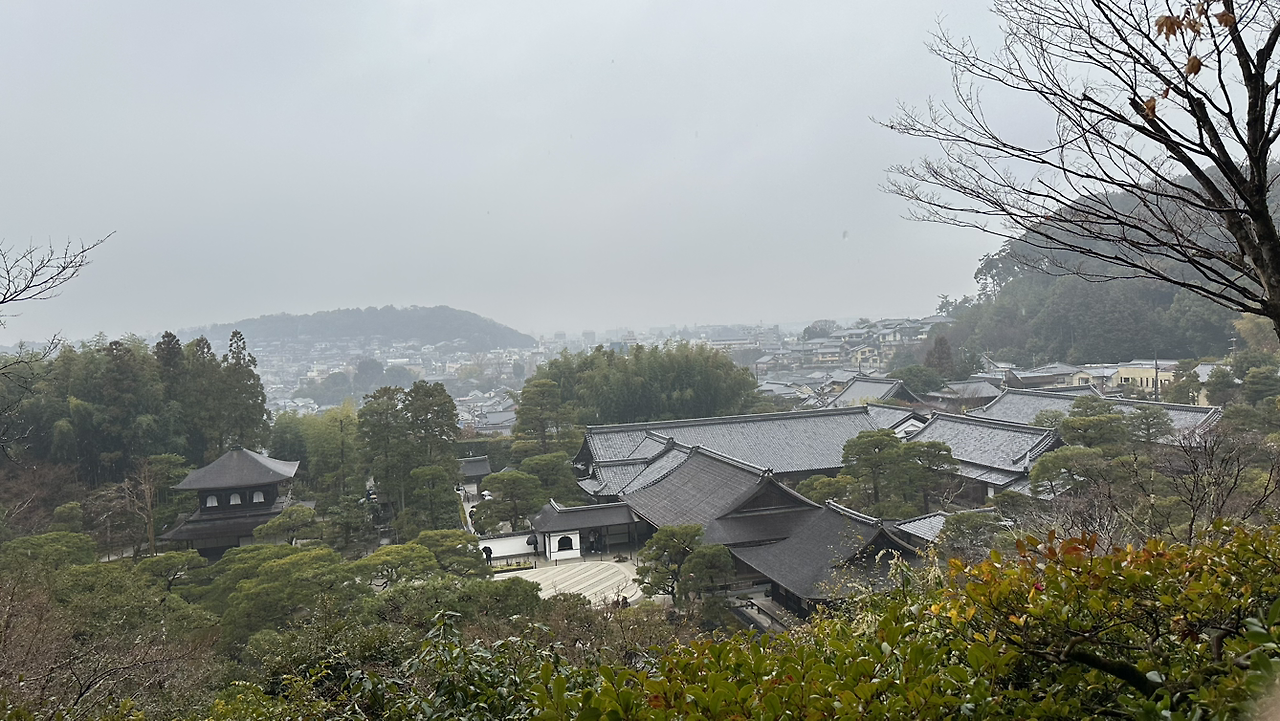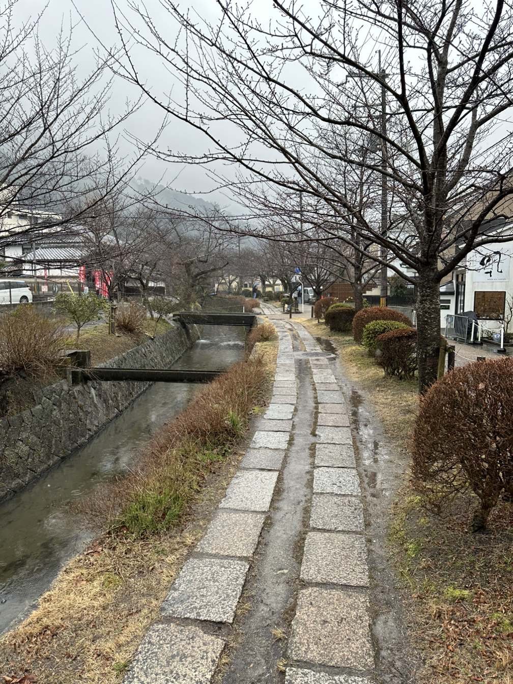 아침 산책 후, 가족들과 편의점 도시락으로 아침을 때우고 은각사(긴카쿠지, ぎんかくじ)로 향한다. 촐촐히 내리는 때 이른 봄비에 우산을 받쳐 들고 정원사의 정성으로 완성되고 유지되어 가고 있는 일본스러운 정원을 가진 은각사를 구경하고 다음 행선지인 교토어소(きょうとごしょ)를 향하던 길이었다. 버스정류장 옆에 철학의 길이라는 작은 천을 따라 조성해 놓은 산책길이 있어서 아이들과 함께 산책을 하다 버스를 타기로 했다.