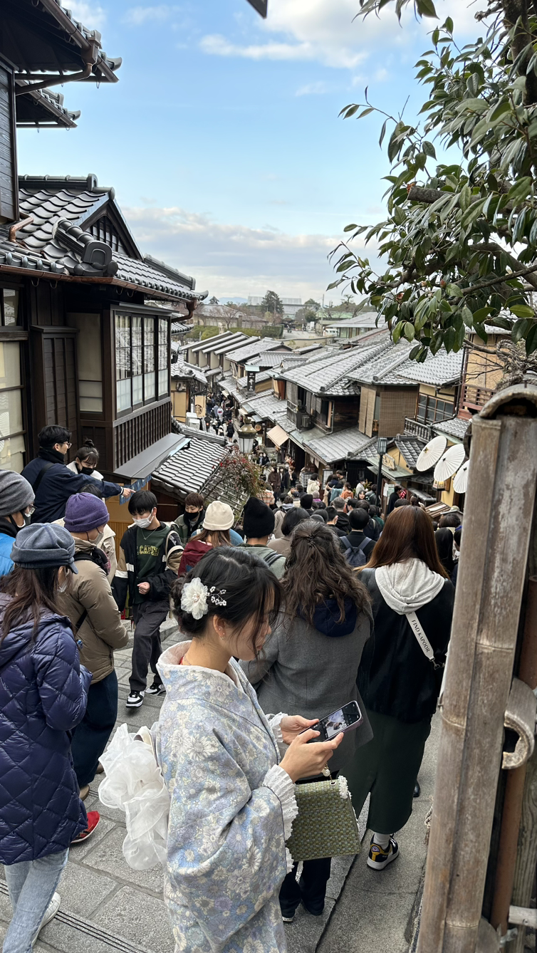 식사를 마치고 버스를 타고 청수사로 향한다. 우리는 청수사로 향하는 길목인 산넨자카와 닌넨자카 거리를 가득 메운 인파 때문에 놀라지 않을 수 없었다. 특히, 상당수의 일본인들이 기모노 차림이어서 의아했다. 알고 보니, 오늘이 일본 천황의 생일이어서 많은 일본인들이 기모노 차림으로 고찰인 청수사를 찾은 것이다. 천황의 생일이 어떤 의미인지는 이해하기 힘들지만 산넨자카와 닌넨자카 거리의 수많은 인파와 많은 기모노 차림의 일본인들을 보며 일본인들 속에서 일본 천황의 위치가 상당하다는 것은 느낄 수 있었다.