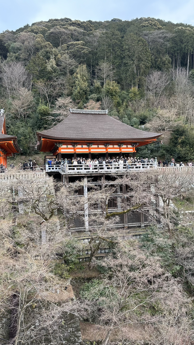 청수사에서 인상적이었던 것은 무엇보다도 사찰의 건축구조였다. 사찰의 반 이상이 절벽의 허공에 건설되어 있었고 이 하중을 목재의 세로와 가로 부재들이 지지하고 있는 구조였다. 또한, 서로 마주 보는 건축물이 같은 형식으로 구성되어 있어서 건축물에서 서로의 건축구조를 조망할 수 있도록 배치되어 있다. 더불어 건축물이 서쪽을 바라볼 수 있는 위치에 자리하고 있어서 해질녁 노을 풍경이 기대되는 장소이다. 어두워지기 전에 닌넨자카의 거리를 구경하고 싶어서 노을을 바라볼 수는 없었지만 맑은 날 청수사에서 바라보는 노을은 분명히 아름다울 것이다.