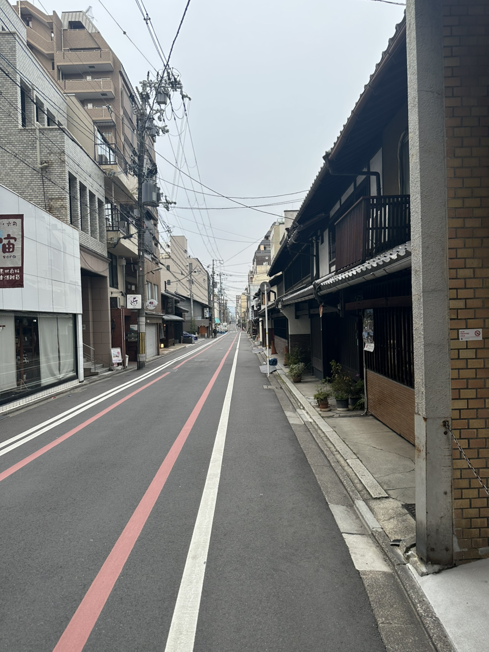 산책에서 돌아오는 길은 큰 도로를 벗어나 이면도로의 골목길로 들어선다. 교토의 전면도로에 늘어선 빌딩의 21세기의 모습이라면 교토의 이면도로 주택가는 20세기에 멈춰있는 듯하다. 어떻게 표현해야 할까 고민하다가 어린 시절 기억나는 고향 목포의 유달동과 선창 주변 골목 주택가와 비슷했다고 말하고 싶다. 작은 이층 구조, 빗물받이, 지붕, 기와 그리고, 출입구와 창문의 모양 등 비슷한 주택가들이 많았다. 물론, 일제 식민지 하에서 만든 일본풍의 건축물들이었을 것이다. 어쩼든, 20세기 중반 건축물들이 상당 부분 유지되고 있었다. 시내뿐 아니라, 어제 청수사의 닌넨자카와 산넨자카 거리도 마찬가지였다. 용도와 인테리어는 현대식으로 변화를 줘서 상점과 식당, 카페로 운영하고 있지만, 건축물 외관은 옛 모습을 간직하고 있었다. 중국 윈난성 리강고성(云南省 丽江古城) 골목과 비슷한 형태로 운영되고 있었다. 아마도 주민들이 자발적으로 보전하기는 불가능했을 것이고 정부의 정책이 관여하지 않았을까 예상해 본다. 전면도로와 다르게 이면도로의 전기배선들이 지하로 매설되지 않고 아직도 공중에 매달려 지나가는 것으로 보면 건축물들을 보전하려는 노력의 일환으로 보인다. (공중의 전선들이 말끔히 정리되어 있는 모습을 보며 일본 답다는 생각을 해본다.)