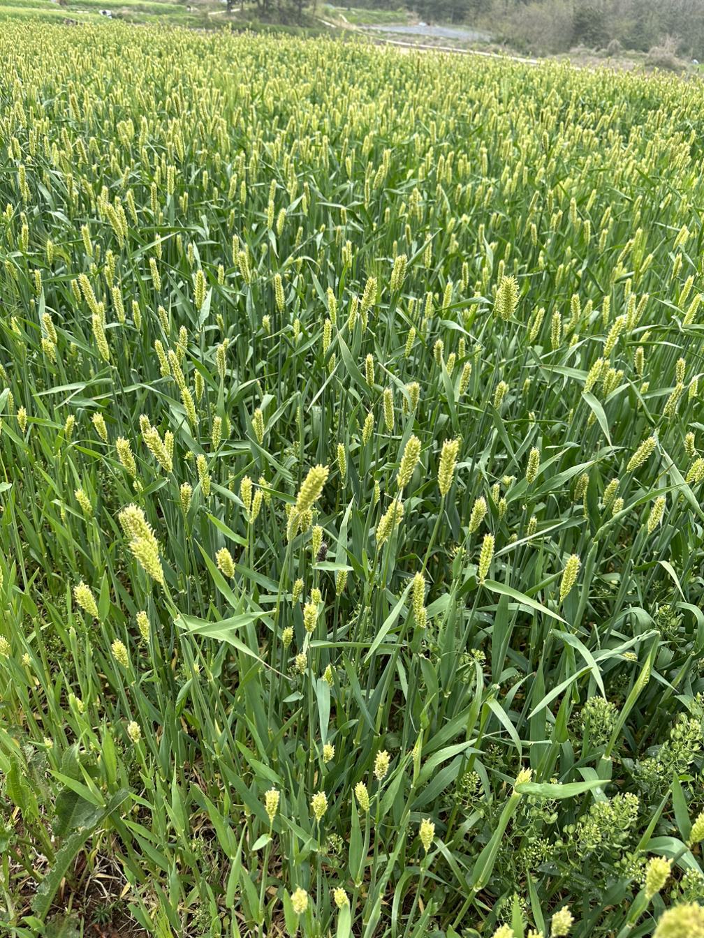작은 마을의 소로 양쪽으로 강아지풀 천지다. 유채꽃이나 다른 꽃밭들은 많이 보았지만 강아지 풀이 이렇게 지천인 곳은 처음이다. 강변에 논 둑에 조금씩 있는 강아지풀들은 흔하게 보았지만 군락의 강아지 풀은 처음 보는 모습이다. 굽이 굽이 소로를 중심으로 온통 솟아난 강아지풀은 그야말로 장관이다. 어떤 용도로 이런 군락을 만들어졌는지는 모르지만 지나가는 여행자에게는 행운이 아닐 수 없다. (처음에는 강아지풀이라고 생각하지 못했지만 네이버의 스마트렌즈로 몇 번이고 확인해도 강아지 풀이라는 결과가 나왔다.)