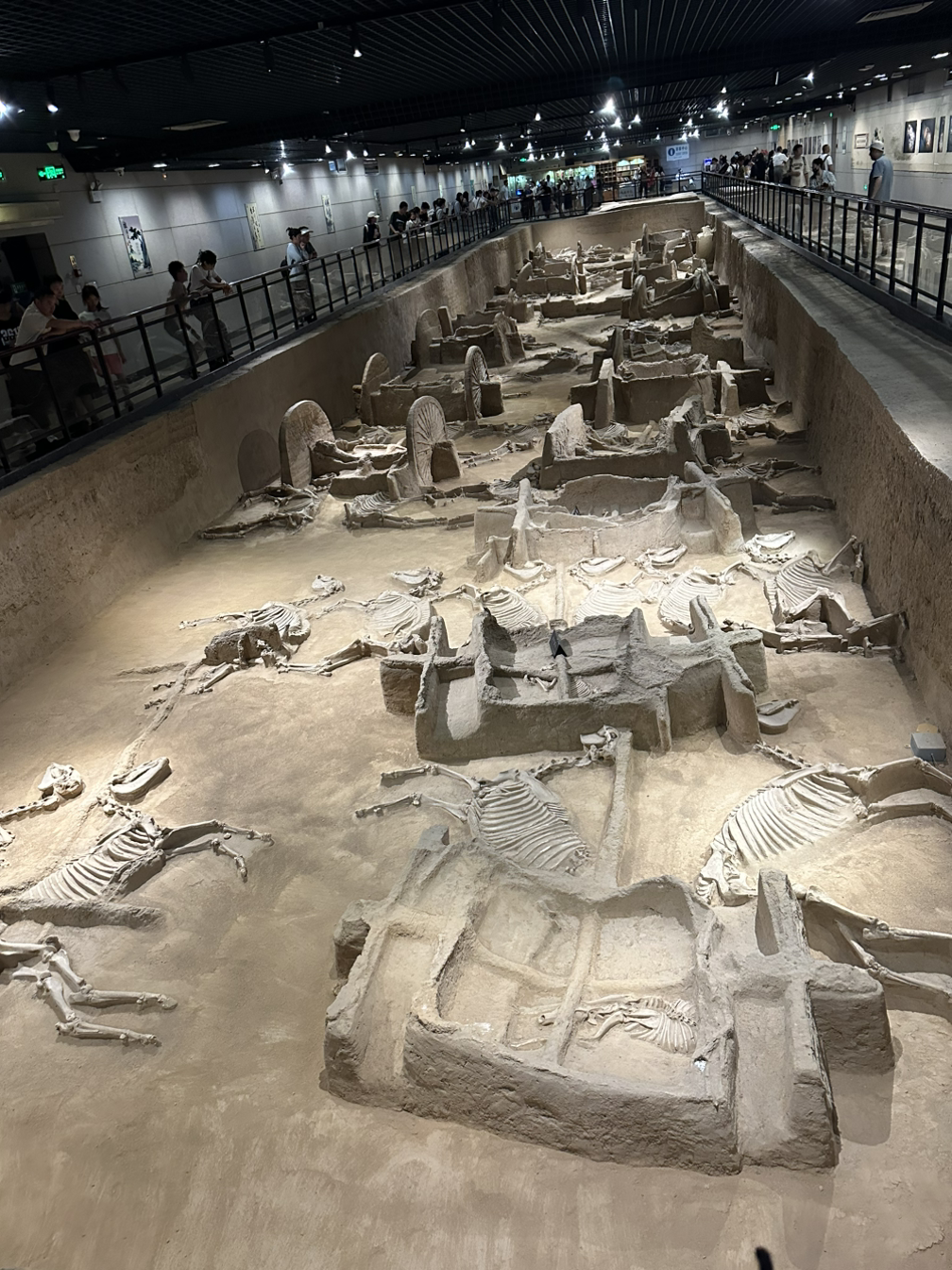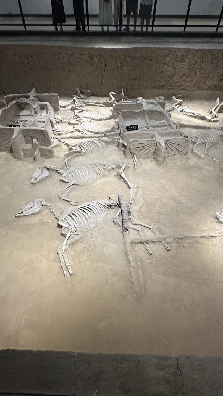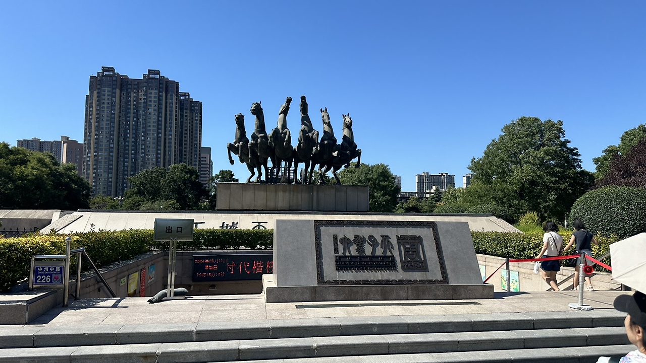 다음 일정은 관림에서 우연히 만난 과천의 교감선생님 부부와 함께한 주천자 가육박물관이야. 이 박물관은 춘추전국시대 이전, 중국의 고대국가인 하·은·주시대의 마지막 국가인 주나라 천자의 묘를 발굴하여 박물관으로 만들어 놓은 곳이야. 낙양을 도읍으로 삼은 최초의 국가가 바로 이 주나라야. 주천자의 묘도 낙양의 한 복판에 형성되어 있어. 고대 천자의 무덤이라는 것 외에도 이곳이 아주 특별한 이유는 바로 순장묘라는 점이야. 주나라 천자는 6마리의 말이 끄는 수레를 이용했고, 수레를 끄는 말의 수는 사람의 지위에 따라 결정되었어. 천자의 묘를 발굴한 이 박물관에서는 문자가 아닌 눈으로 순장을 목격할 수 있게 만들어 놓았어. 지금부터 약 2500여 년 전의 무덤을 눈으로 보는거지.
