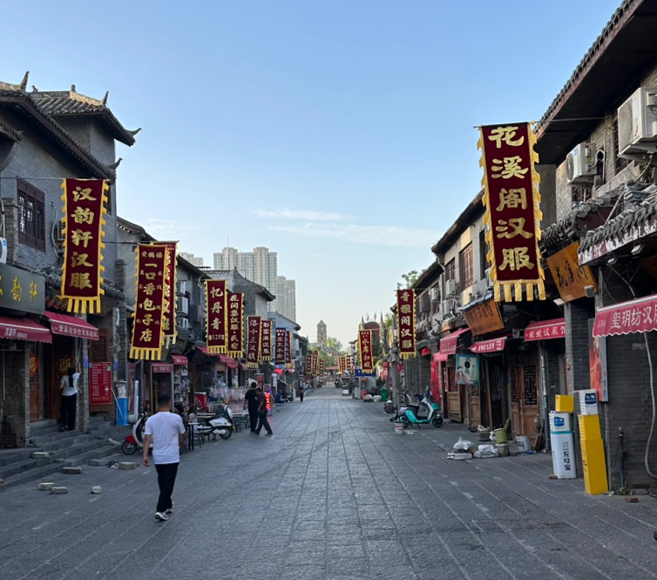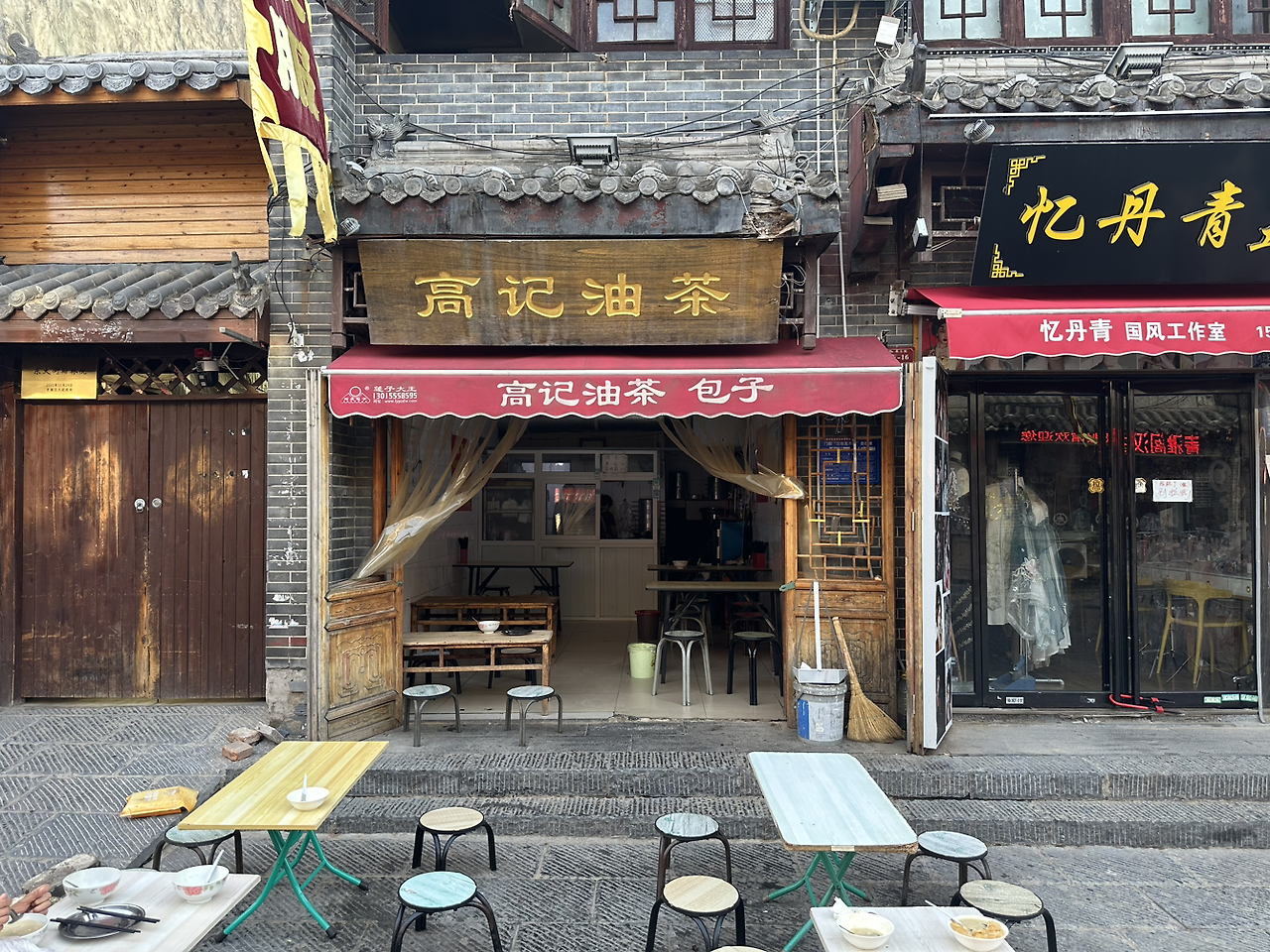 샤워를 하고 아직 이른 시간이지만 동네 산책도 하고 아침식사도 할 겸, 밖으로 나갔어. 여행을 하면 당신과 아이들이 아침잠을 자고 있을 때 혼자 나가서 동네 한 바퀴 돌고 오는 언제나와 같은 루틴이지. 사람이 많은 중국도 아침 모습은 한가하더라. 어젯밤 그 많은 사람들은 어디로 들어갔는지, 조용한 아침 거리가 신기할 정도였어. 큰길에서 낙읍고성(洛邑古城)방향으로 산책을 하다가 숙소 방향으로 돌아왔더니 아침식사를 하는 식당들이 하나씩 문을 열리 시작했어.