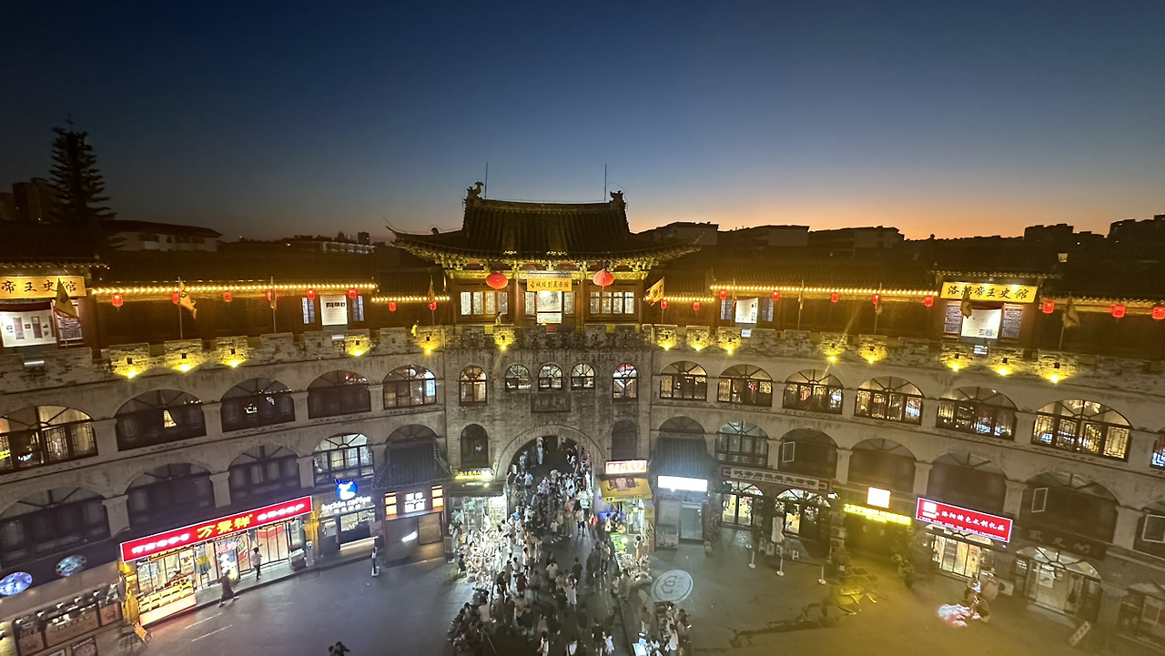 여경문은 낙양에서 야경이 가장 아름다운 곳이 아닐까 싶어. 그리고 야시장과도 연결되어 있어서 저녁식사하고 산책 삼아 오기에 좋은 곳이더라. 여경문 성벽에 오르면 낙양의 역사를 한눈에 볼 수 있는 작은 박물관이 있는데 이곳에서는 낙양을 첫 도읍지로 삼았던 주나라와 춘추전국시대, 진나라, 한나라, 위진남북조, 수, 당의 중국 역사를 도표형식으로 간략하게 볼 수 있어. 당신도 알다시피 내가 중국 역사에 관심이 많아서 한 시간 넘게 짧은 중국어와 번역기를 이용해서 도표와 설명을 읽어 나갔어. 이 중에서도 관심이 갔던 부분은 공자가 존경에 마지않던 주나라 주공에 관한 이야기, 위나라 조조에 관련된 글, 당나라 측천무후에 관한 이야기, 당현종과 양귀비 그리고 안록산의 난 같이 우리에게도 익숙한 역사들이 많아서 흥미로웠어. 여경문과 이어진 야시장을 거쳐 카페에서 국화차 한 잔을 주문하고 낙양에서의 첫째 날을 마감해. 덥고 길었지만 즐거운 하루였어.