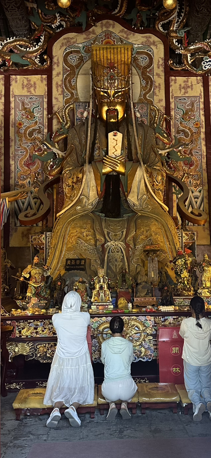 관우의 사당에는 관우상이 있고 관우의 좌우를 지키는 두 장군이 있어. 좌측을 지키는 장군은 관운장의 아들 관평이고, 험상궂고 시커먼 얼굴의 장군이 주창이야. 말년의 관우를 보위하던 측근으로 대부분의 사당에서 관우와 함께 볼 수 있어. 관우의 사당이 우화적인 분위기인 것은 관우가 도교의 신들 중 하나로 추앙받고 있기 때문이야. 도교의 신 중에서도 관우는 재물신으로 알려지면서 중국인들이 가장 좋아하는 신이 된 거지. 삼국지연의에서의 의리를 숭상하는 관우의 모습과 재물신으로 알려진 도교적 이미지 때문에 중국인들이 가장 사랑하는 인물 중 하나가 된 것 같아.