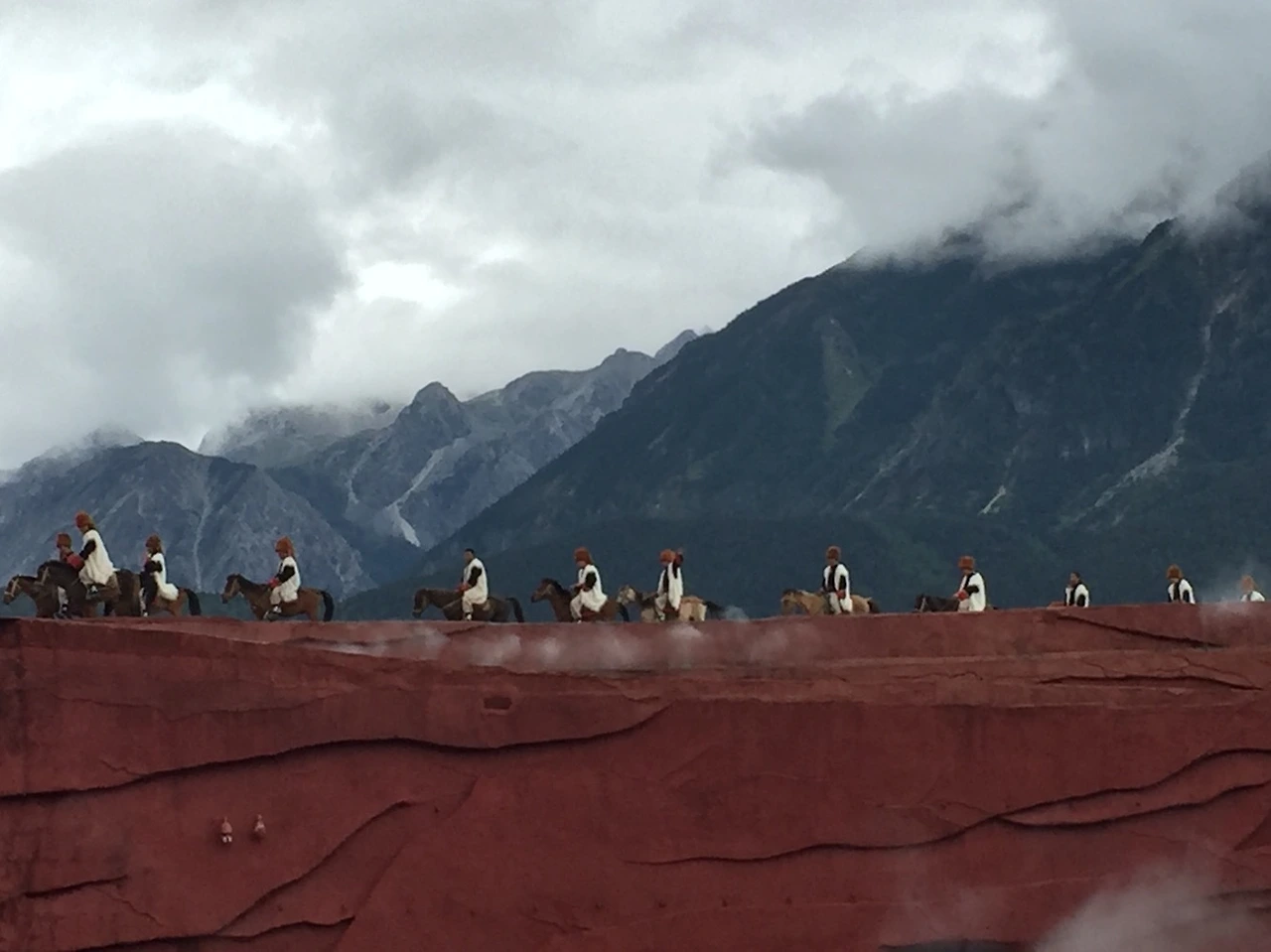 인상여강공연은 나시족 주민 500여명이 출연하는 야외공연으로 옥룡설산을 배경삼아 첩첩산중 차마고도를 형상화한 대규모 무대를 설치하고 차마고도와 함께하는 나시족의 삶과 애환을 노래와 춤으로 표현하는 공연이다. 우리가 공연을 볼 때쯤 내리던 비가 멈춰서 옥룡설산은 마치 백룡에 감싸인듯 한 모습이었고 백룡에 둘러쌓인 설산아래 인간이 만든 차마고도와 수백의 인간이 설산을 경외하는 춤과 노래를 바치는 축제의 장이었다. 아름다운 자연의 모습도 절경이었지만, 이 날은 자연과 어울어진 나시족의 춤과 노래가 가장 인상적인 날이었다.
