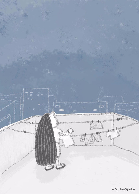 밤늦게 생각난 옥상에 널어놓은 빨래들