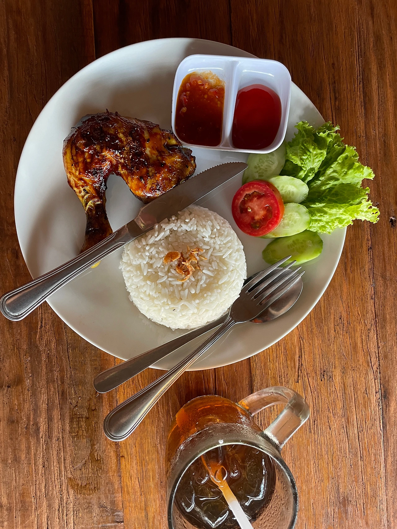가격이 4천 원을 넘어가기 시작하면 고기의 비중이 급격히 늘어난다. 폭립, 나시짬뿌르 등등. 특히 발리에는 Fish Steak가 많은데, 그 Fish란 바로 참치 되시겠다. 발리에서는 참치가 눈에 밟히도록 흔하다. 참치 스테이크 가격대는 식당마다 다르지만, 내가 가장 즐겨가던 우붓의 Opini Kopi에서는 단돈 4천 원이 안 되는 가격에 큼직한 참치를 먹을 수 있어서, 나시고랭 다음으로 두 번째로 많이 먹은 메뉴였다. 맛은 딱 고등어조림 같은 맛이라서, 한식이 그리울 때도 종종 찾았다.