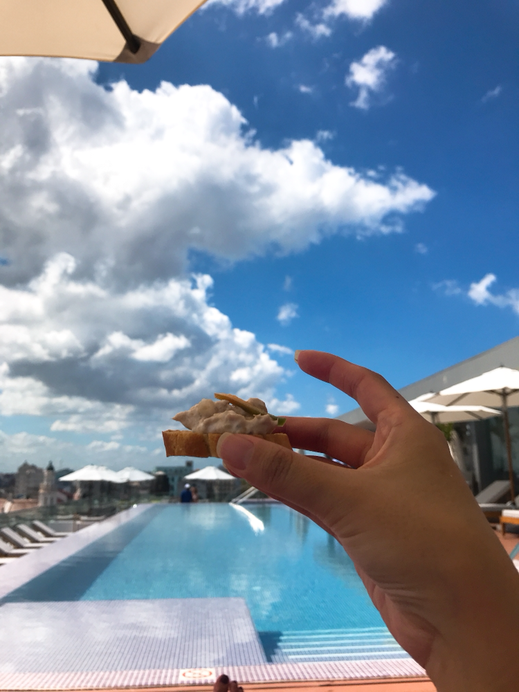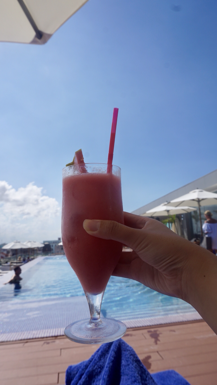 호텔 수영장에 누워서 마시는 주스와 공짜 핑거푸드는 최고. 참고로 유일하게 종일 와이파이를 전층에서 쓸 수 있게 해주는 고급호텔이었다 (다른곳에서는 한시간 짜리 카드를 사서 로비에서만 쓸 수 있음)