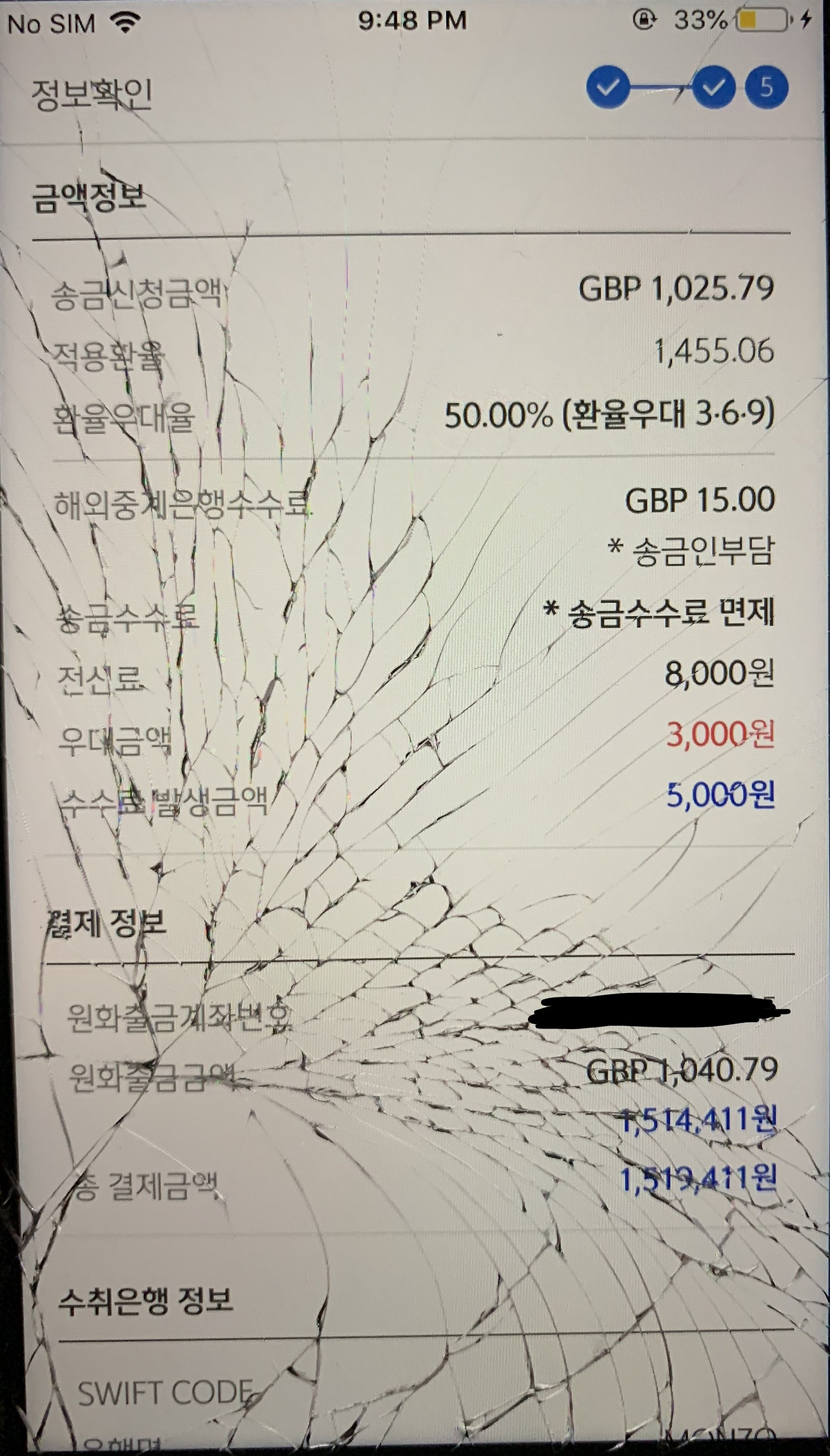 타 은행권과 비교해서는 나은 모습이지만 여전히 입력항목이 많고 어렵다. 5단계나 될 이유가 있나요? 무지렁이는 뭔가 잘못입력해서 괜히 돈도 못보내고 송금수수료만 물까봐 결국 완료하지 못했다.