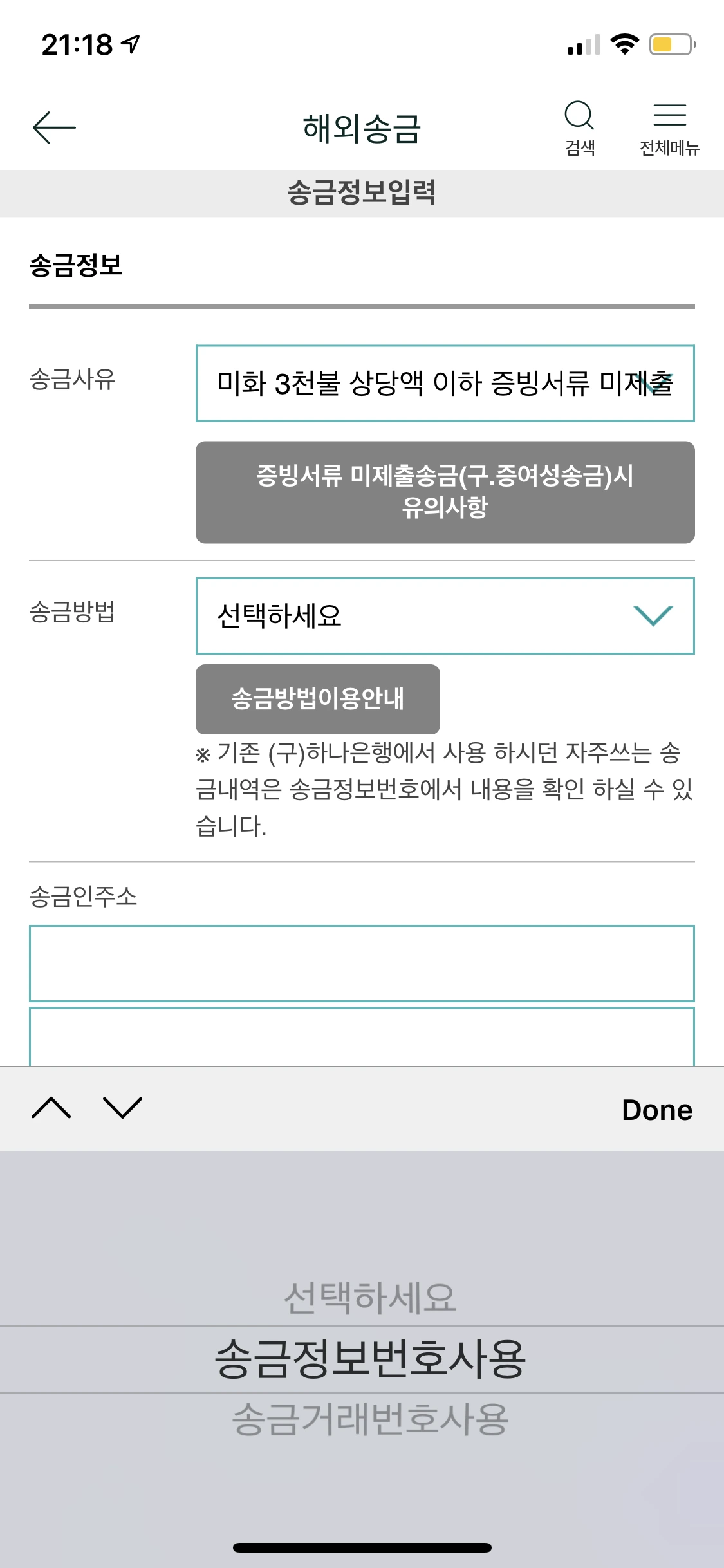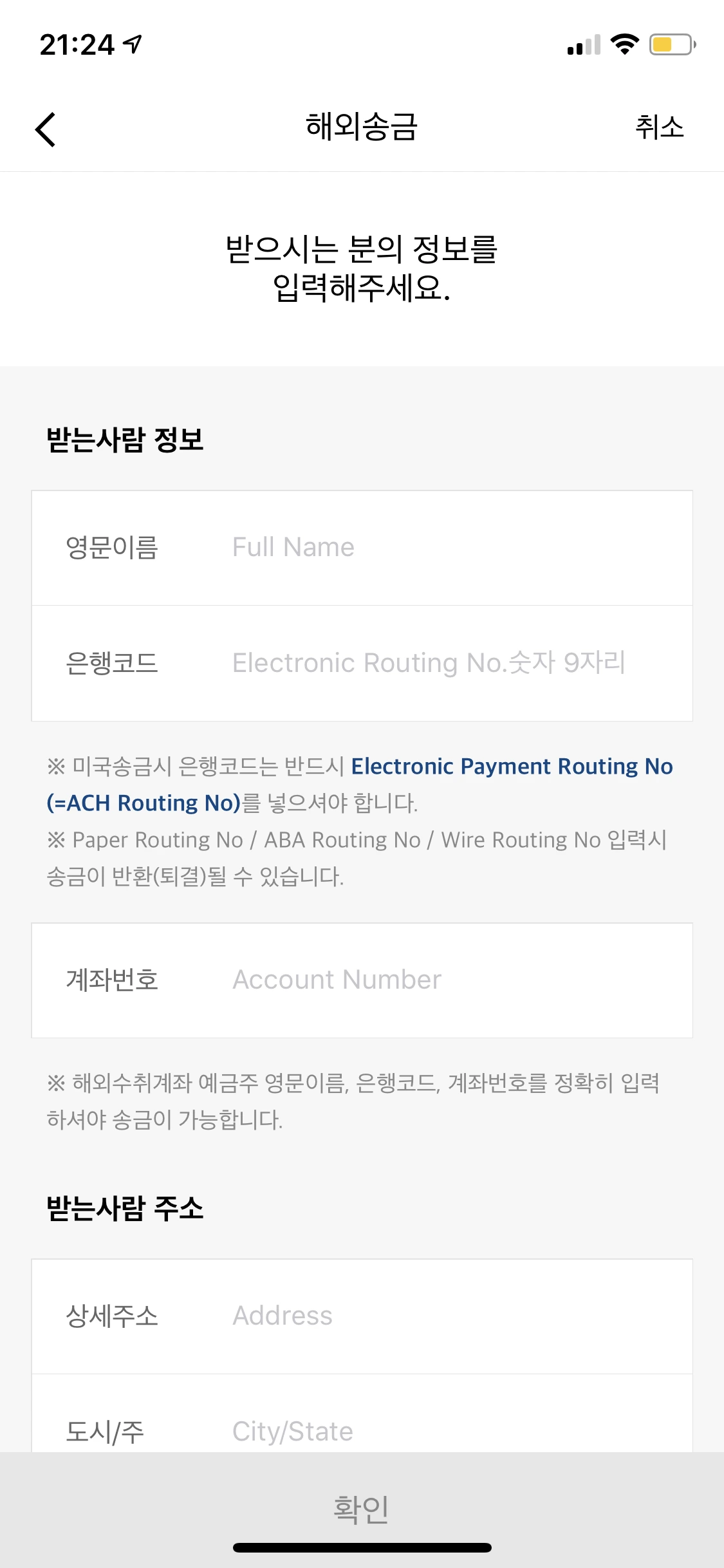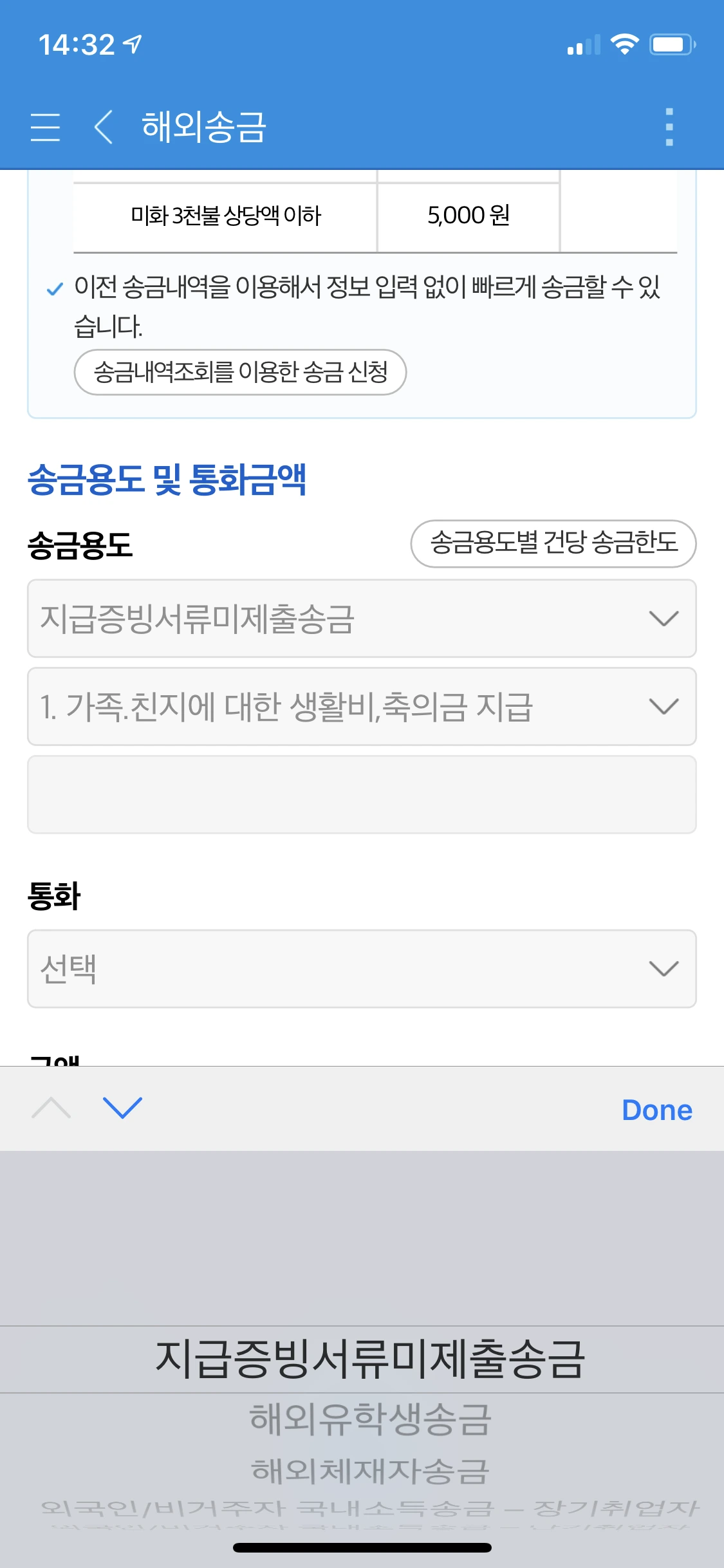 송금가능한 통화는 제한적이지만 메뉴는 하나고 사용/입력항목도 기존 은행들과 비교해서 훨씬 적고 이해하기 쉽다. 결국 이것으로 성공 ㅠㅠ