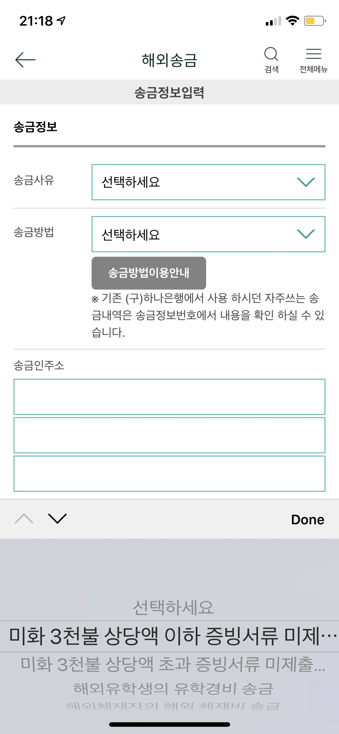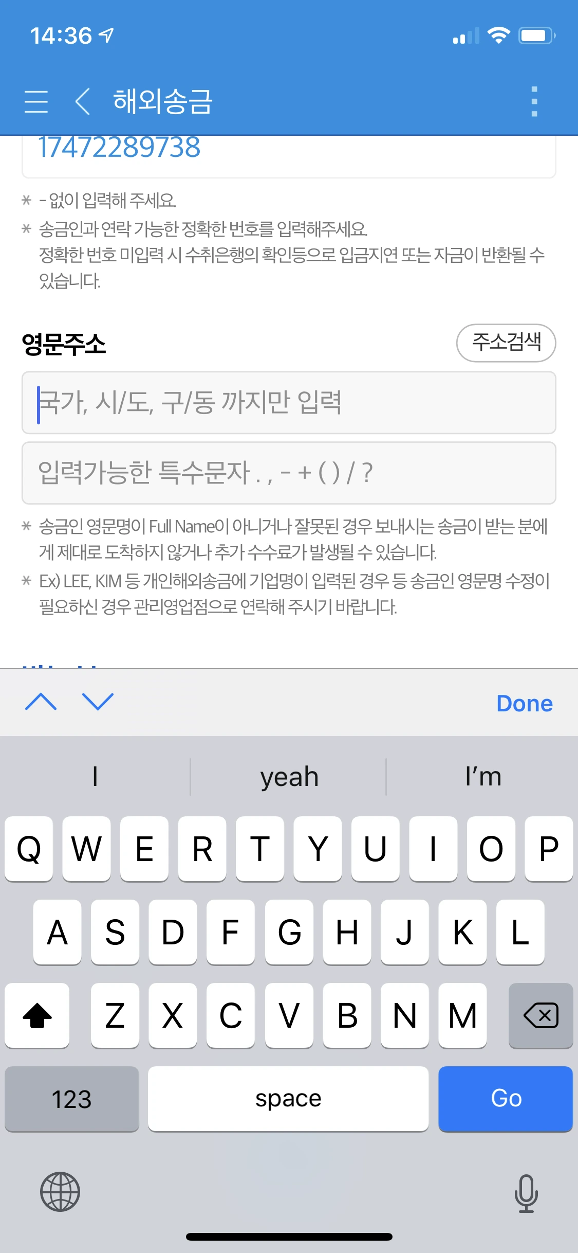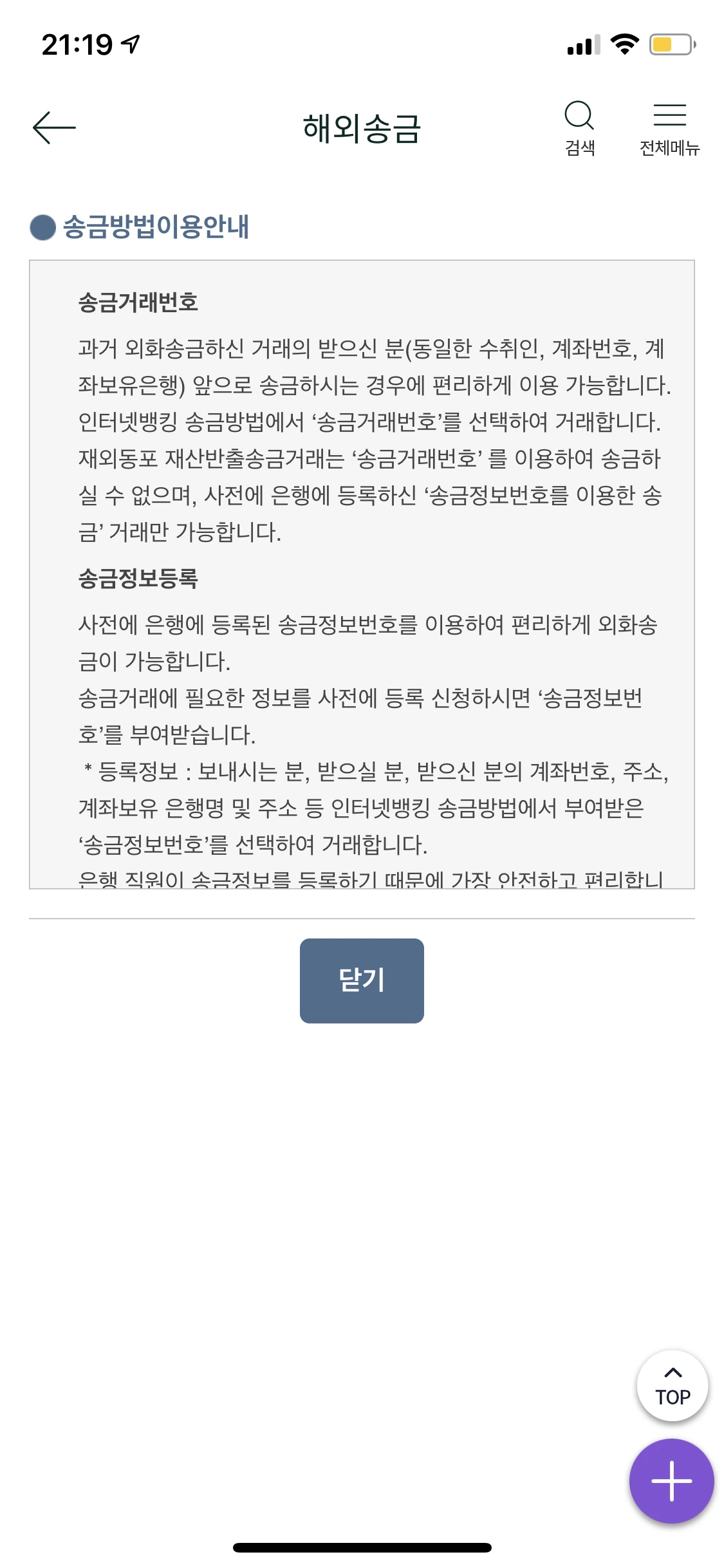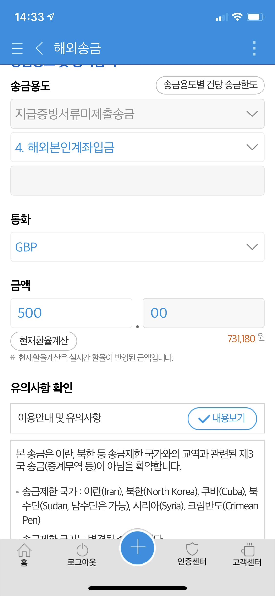 송금가능한 통화는 제한적이지만 메뉴는 하나고 사용/입력항목도 기존 은행들과 비교해서 훨씬 적고 이해하기 쉽다. 결국 이것으로 성공 ㅠㅠ